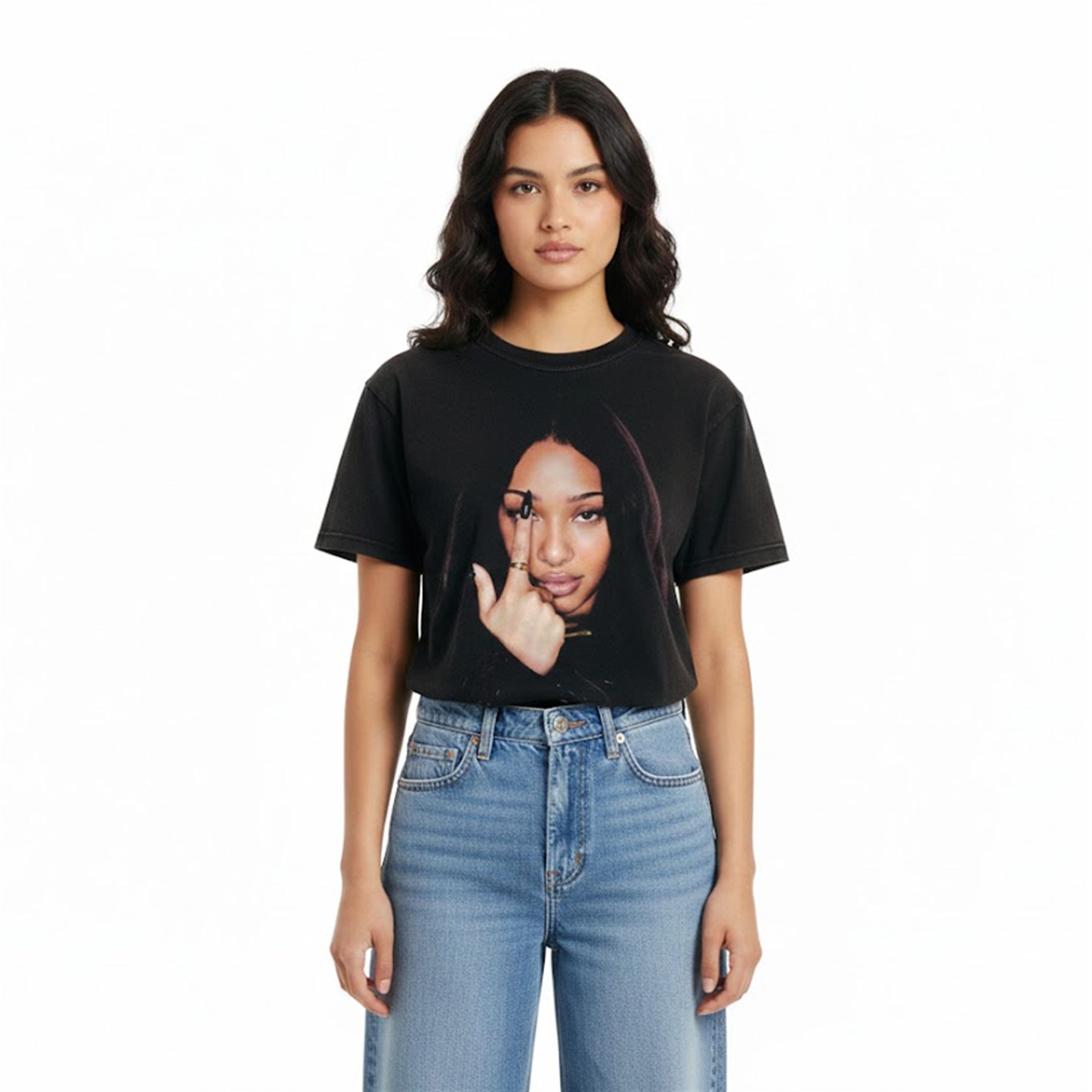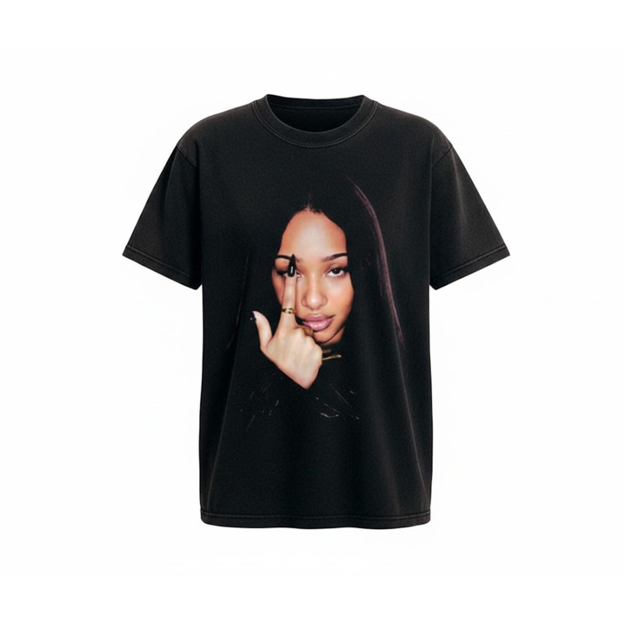 The shirt embraces the wildly popular vintage homage aesthetic, bringing a distinct, edgy vibe to modern pop culture merchandise. The design prominently features a captivating, oversized portrait of Manon, the beloved member of the global girl group KATSEYE. Captured in a striking, confident pose with a moody, dark background, the visual instantly commands attention. The design utilizes the classic “bootleg” aesthetic—reminiscent of retro hip-hop and vintage tour merchandise—which has become a dominant force in contemporary streetwear.