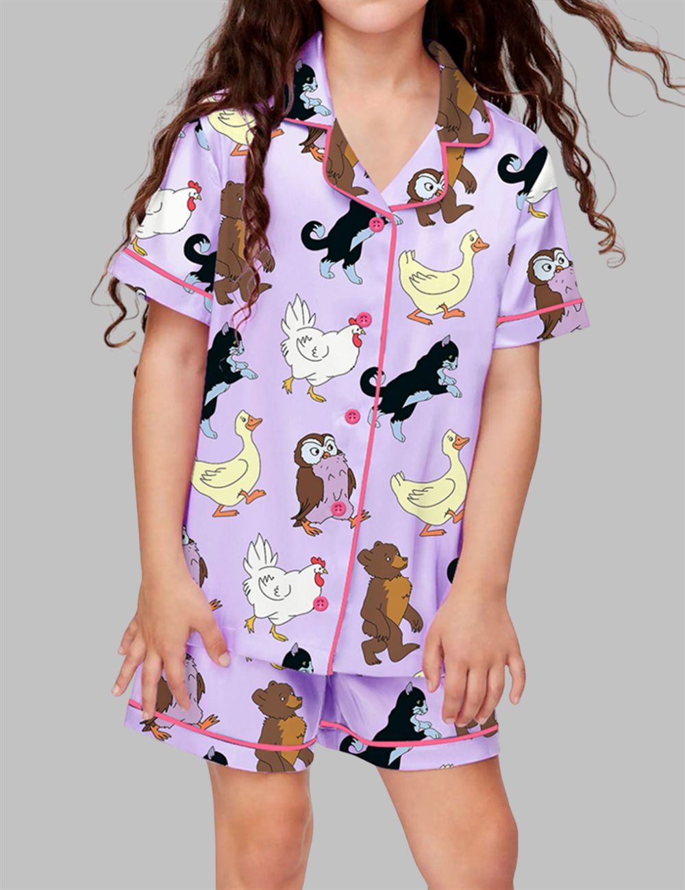 Drift off to a land of sweet dreams and enchanting stories with our Little Cute Bear Pajama Set . This isn’t just sleepwear; it’s a ticket to a whimsical world where friendly animals roam. The beautiful lavender fabric serves as the perfect backdrop for a delightful party of woodland and farmyard pals, including charming brown bears, clucking white chickens, curious owls, and happy little ducks. Every night becomes an opportunity for imaginative play and cozy comfort, making this pajama set a beloved addition to any wardrobe.