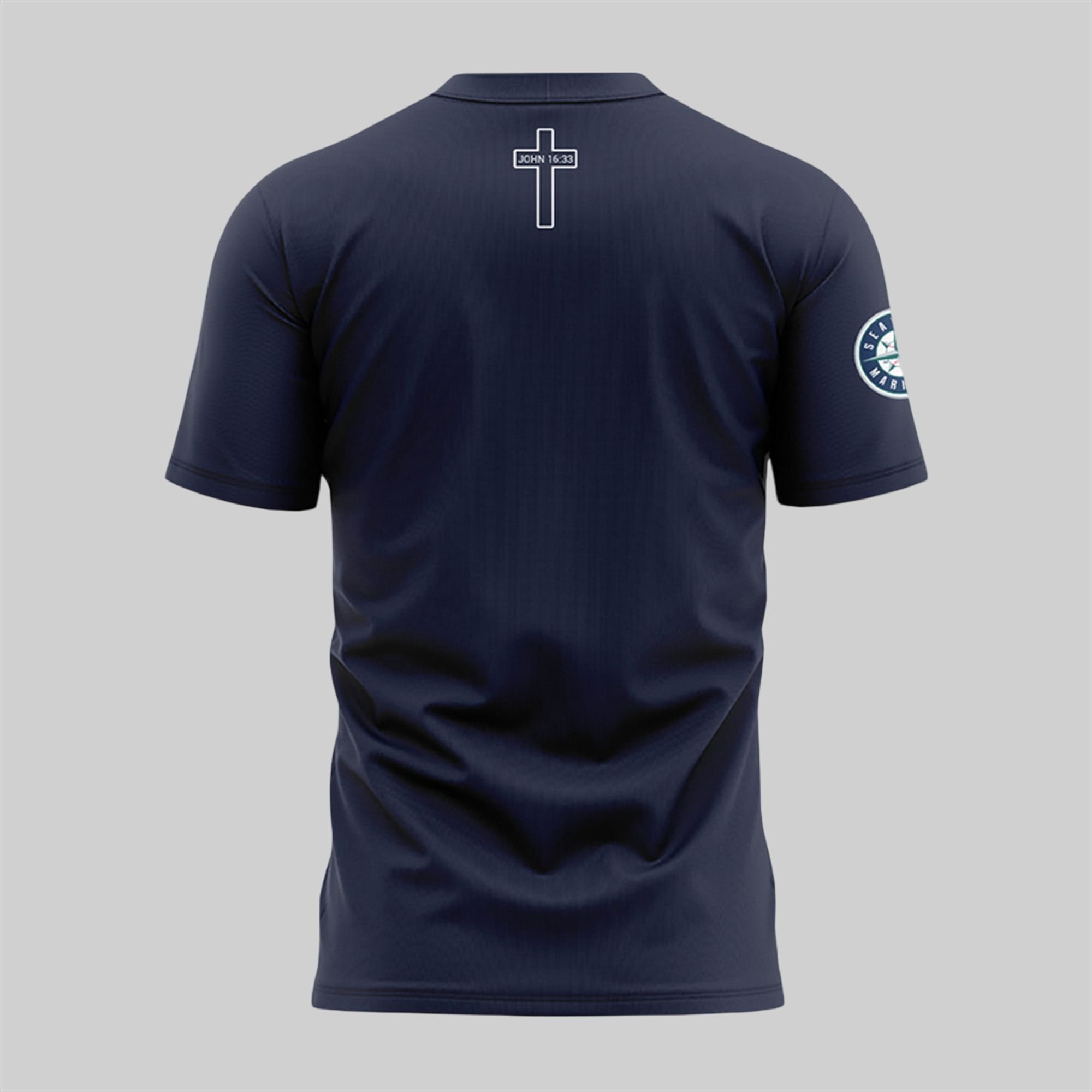 Channel the spirit and poise of Seattle’s ace, Logan Gilbert, an athlete known as much for his fierce competitiveness on the mound as for the steadfast faith that grounds him. This shirt is directly inspired by the apparel he and other athletes wear to represent their beliefs. It’s for the fan who admires the player not just for their ERA or strikeout count, but for their character and conviction.