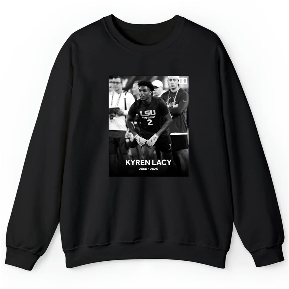 The LSU Kyren Lacy Death Shirt is a heartfelt tribute tee that honors the legacy of standout LSU wide receiver Kyren Lacy, who tragically passed away in 2025. Featuring a striking black-and-white collage of Lacy’s most iconic moments, this shirt is perfect for LSU fans, friends, and those who admired him. Printed with “Kyren Lacy 2000–2025,” it’s a memorial shirt designed to show respect and gratitude for his life and achievements. Available in unisex sizes and premium cotton blends, this Kyren Lacy shirt ensures you can pay tribute in comfort and style.