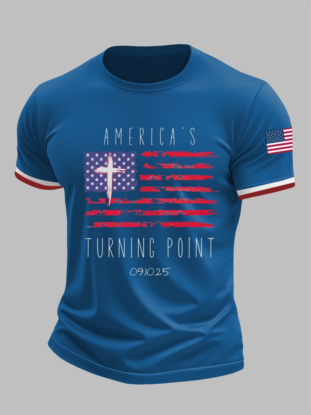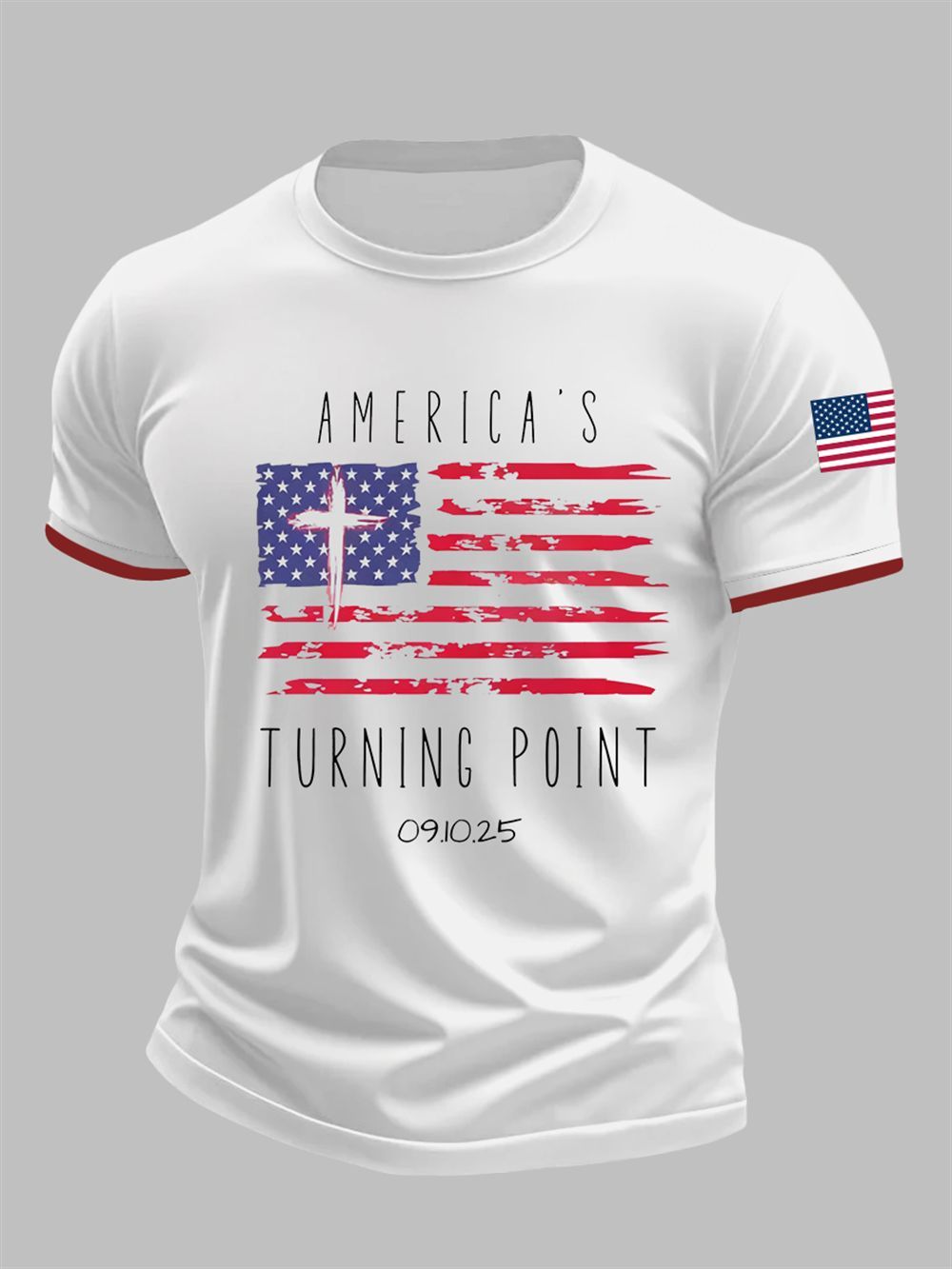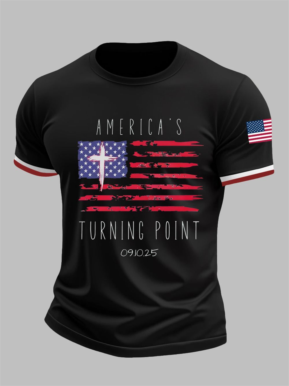 Men’s Charlie Kirk Turning Point Flag Cross Short Sleeves T-shirt | Honor a Legacy, Inspire a Nation