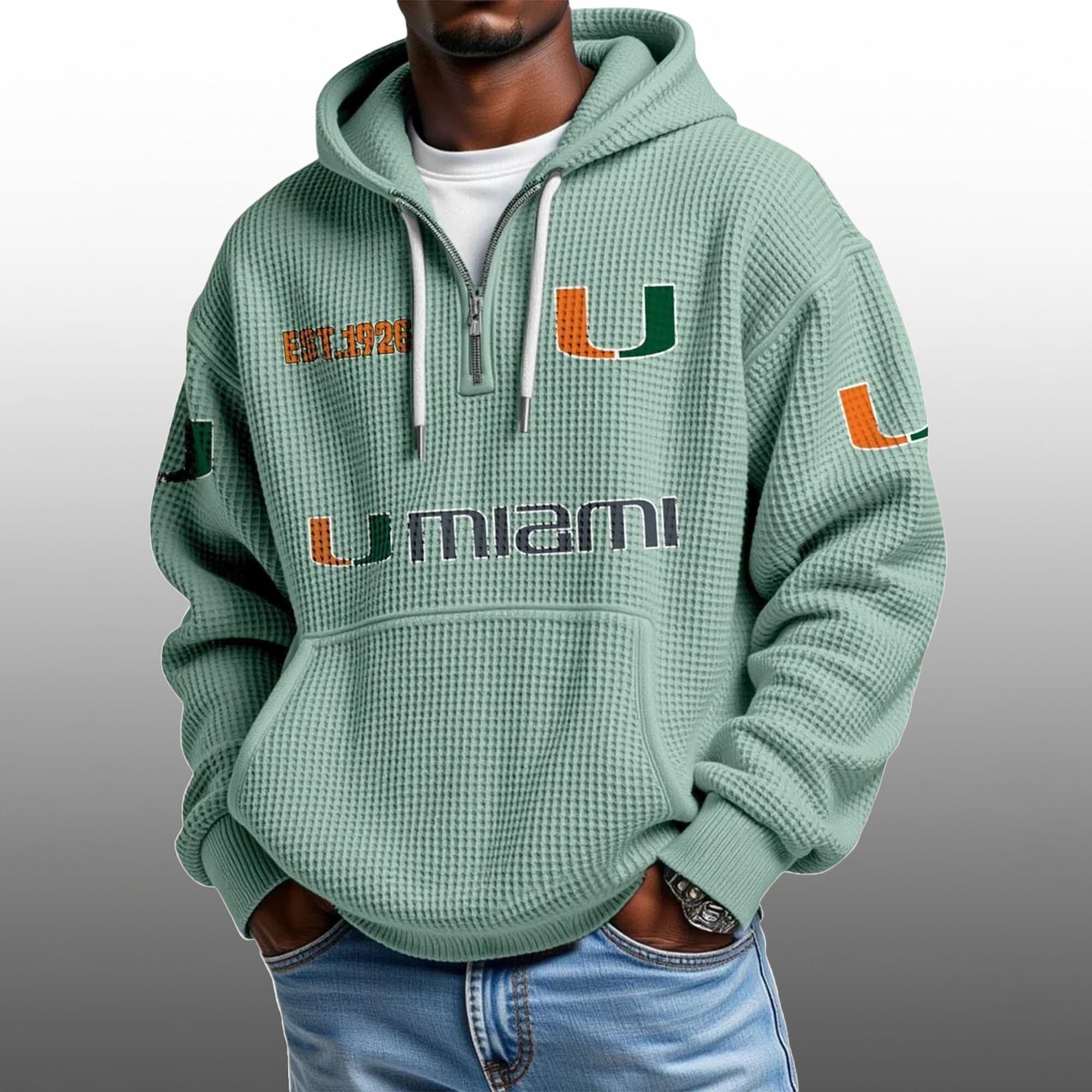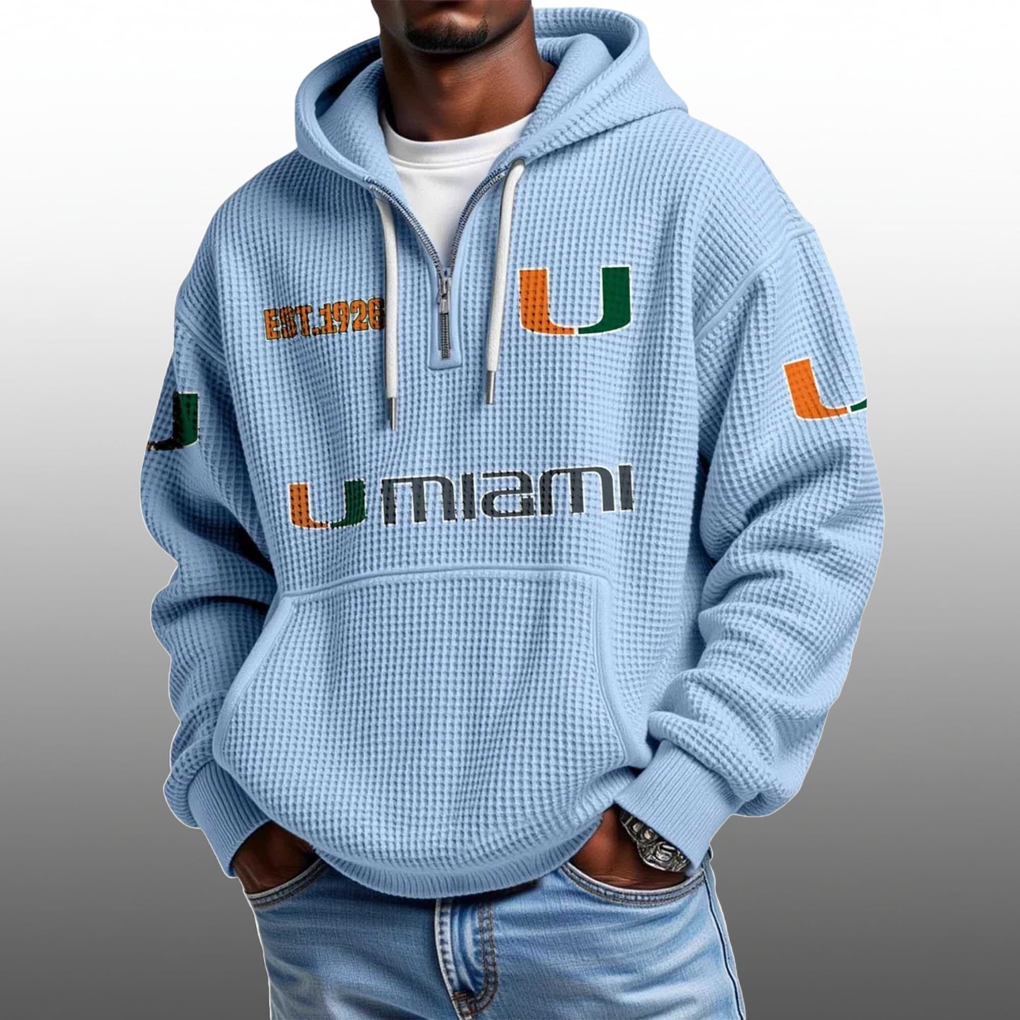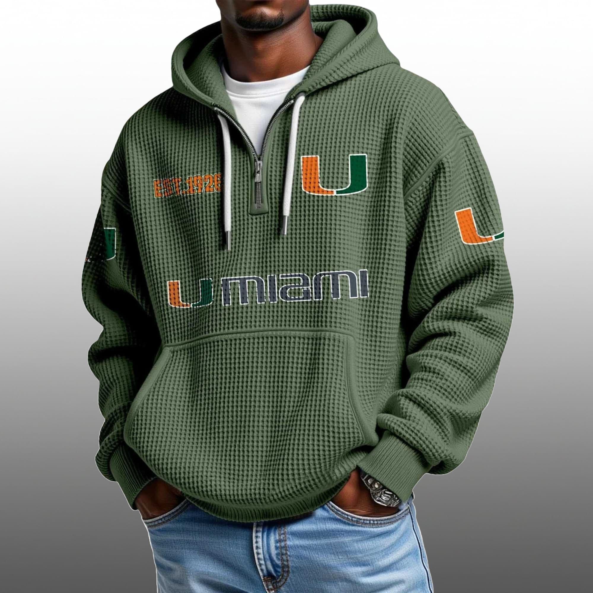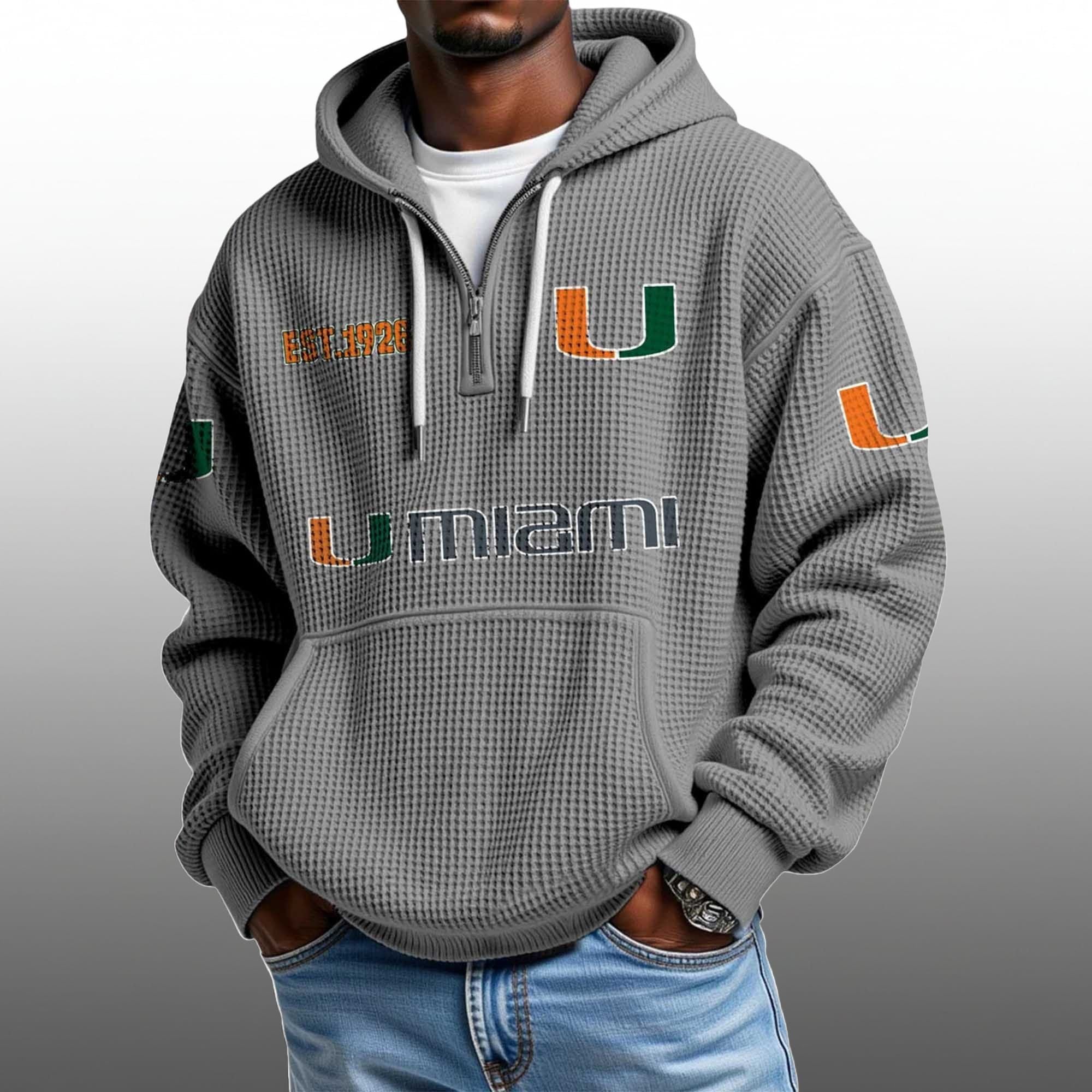 Upgrade your game day rotation with the hoodie, a garment that redefines collegiate apparel. Merging the tactical durability of waffle knit thermal fabric with the effortless style of a quarter-zip pullover, this hoodie is engineered for fans who live and breathe Miami football.