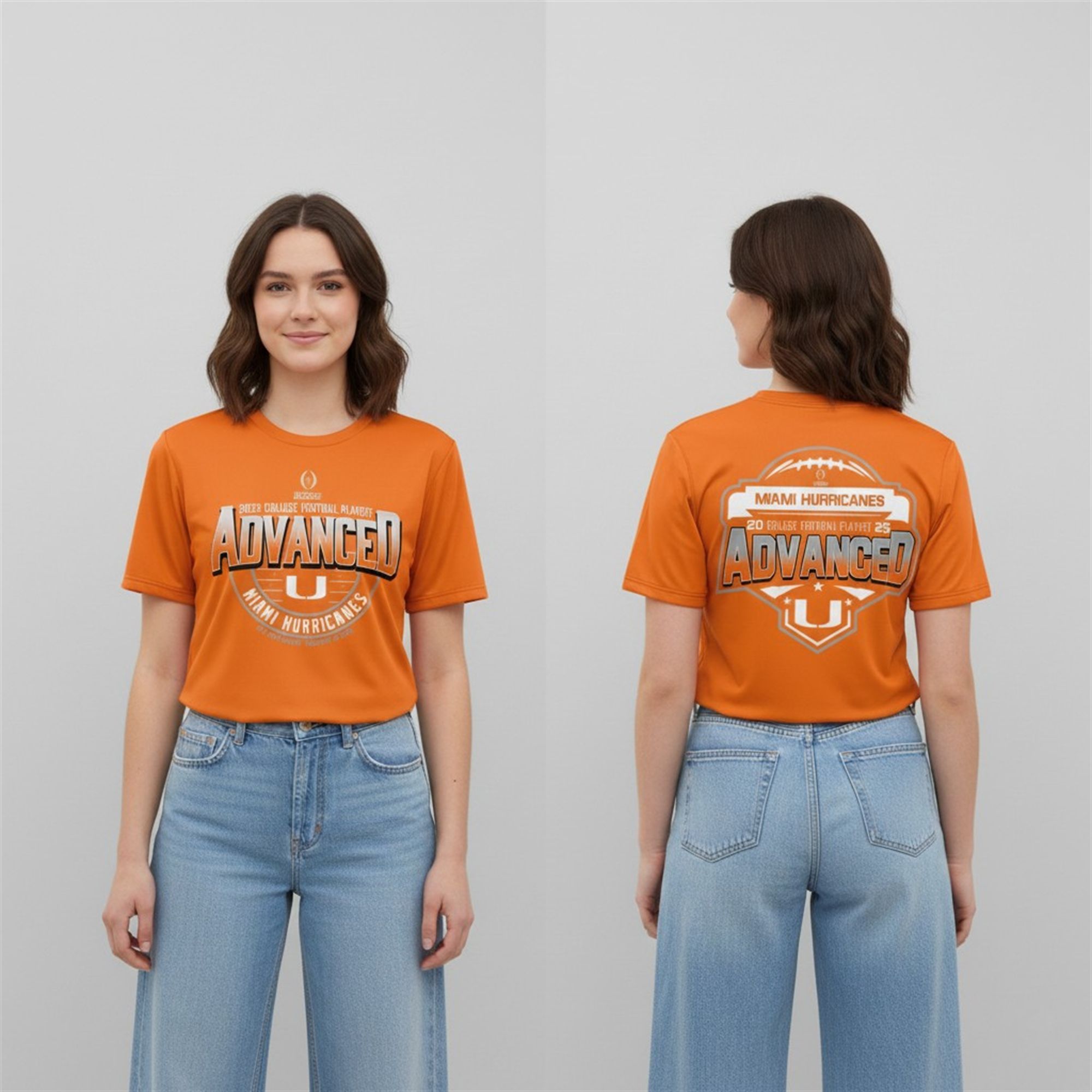The Miami Hurricanes CFP 2025 Advanced Shirt is more than just apparel; it is a wearable trophy from one of the toughest environments in college football. Designed to commemorate the Hurricanes’ thrilling victory over Texas A&M on December 20, 2025, this shirt features bold graphics that celebrate the team advancing past the First Round of the 12-team playoff bracket.