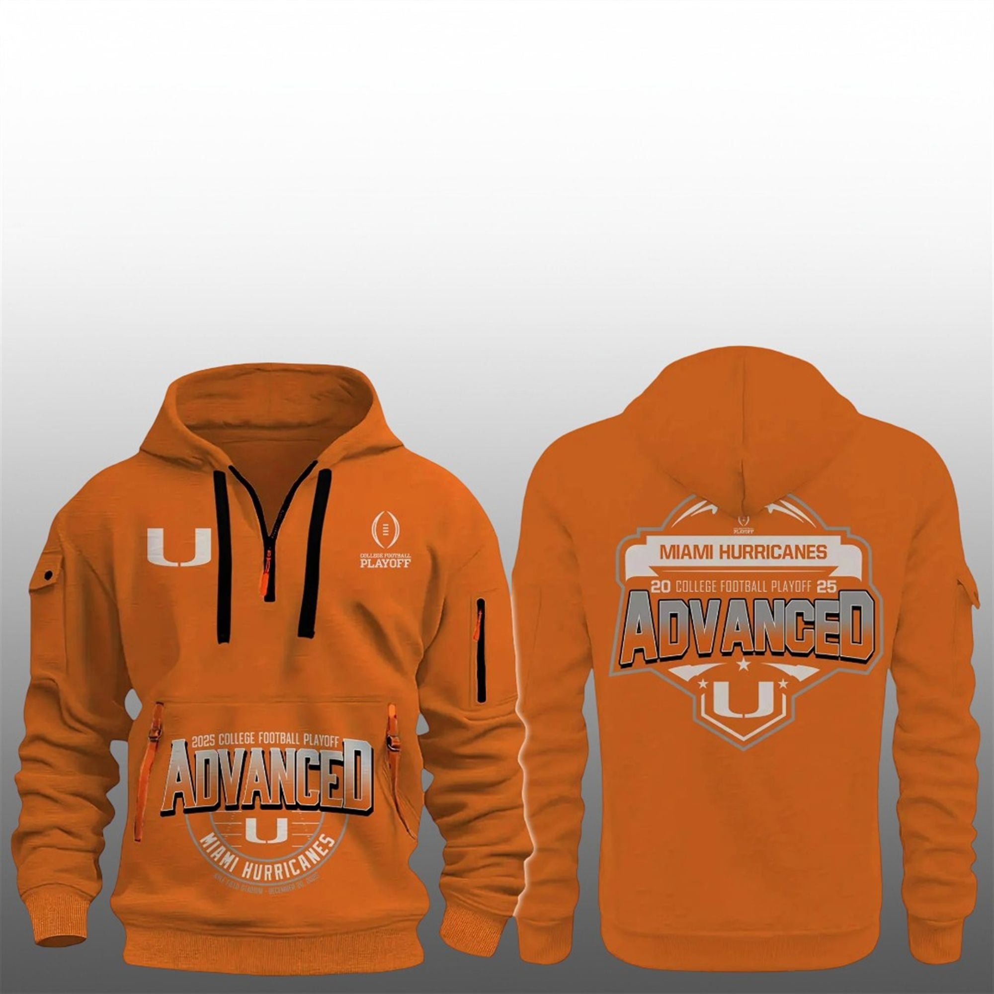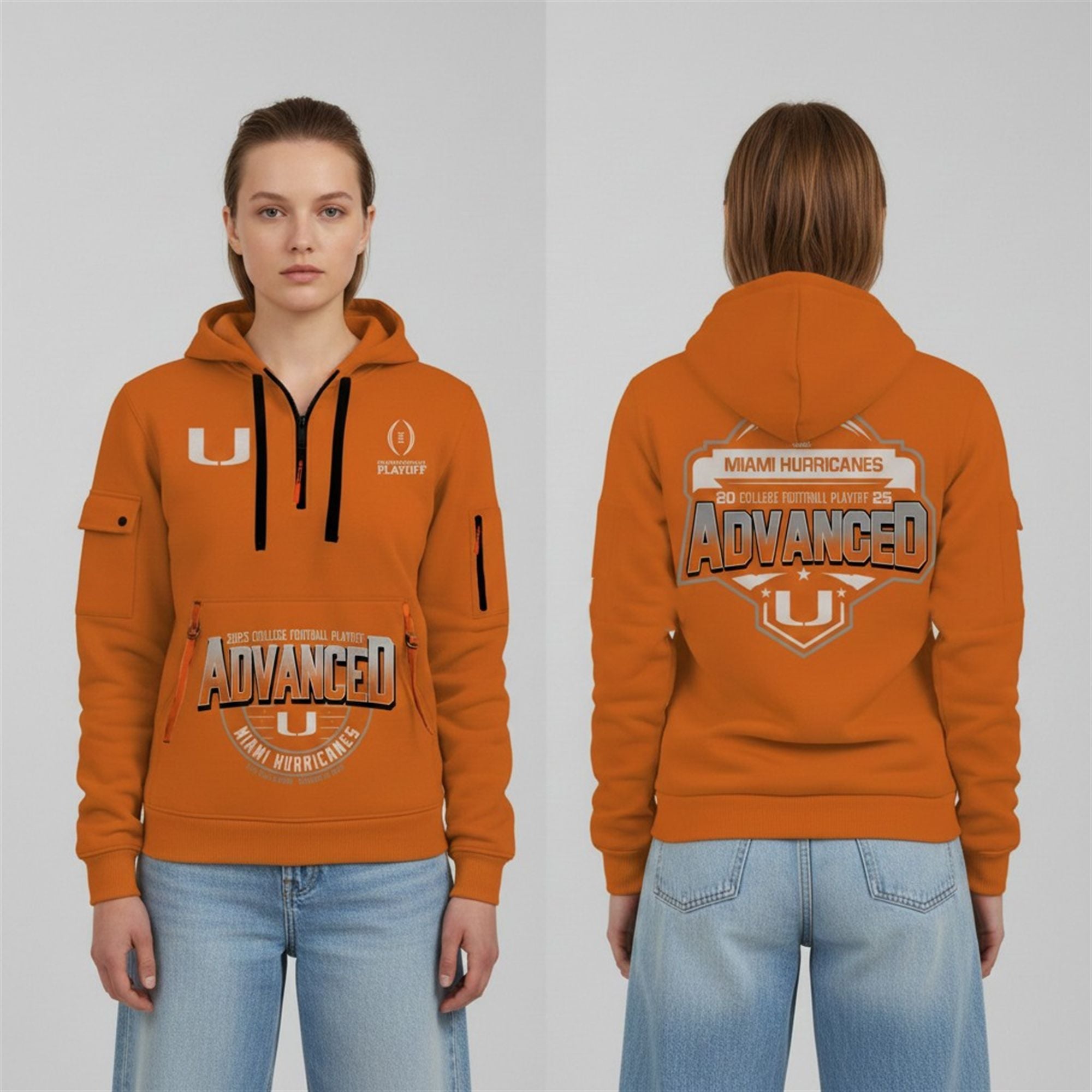 The wait is over, and the Hurricanes have punched their ticket to the next stage. Celebrate Miami’s dominance with the new Miami Hurricanes 2025 CFP “Advanced” Hoodie, a piece of commemorative apparel designed for the modern fan. This isn’t just a standard sweatshirt; it’s a tactical-style quarter-zip engineered for the cooler December weather of the College Football Playoff.