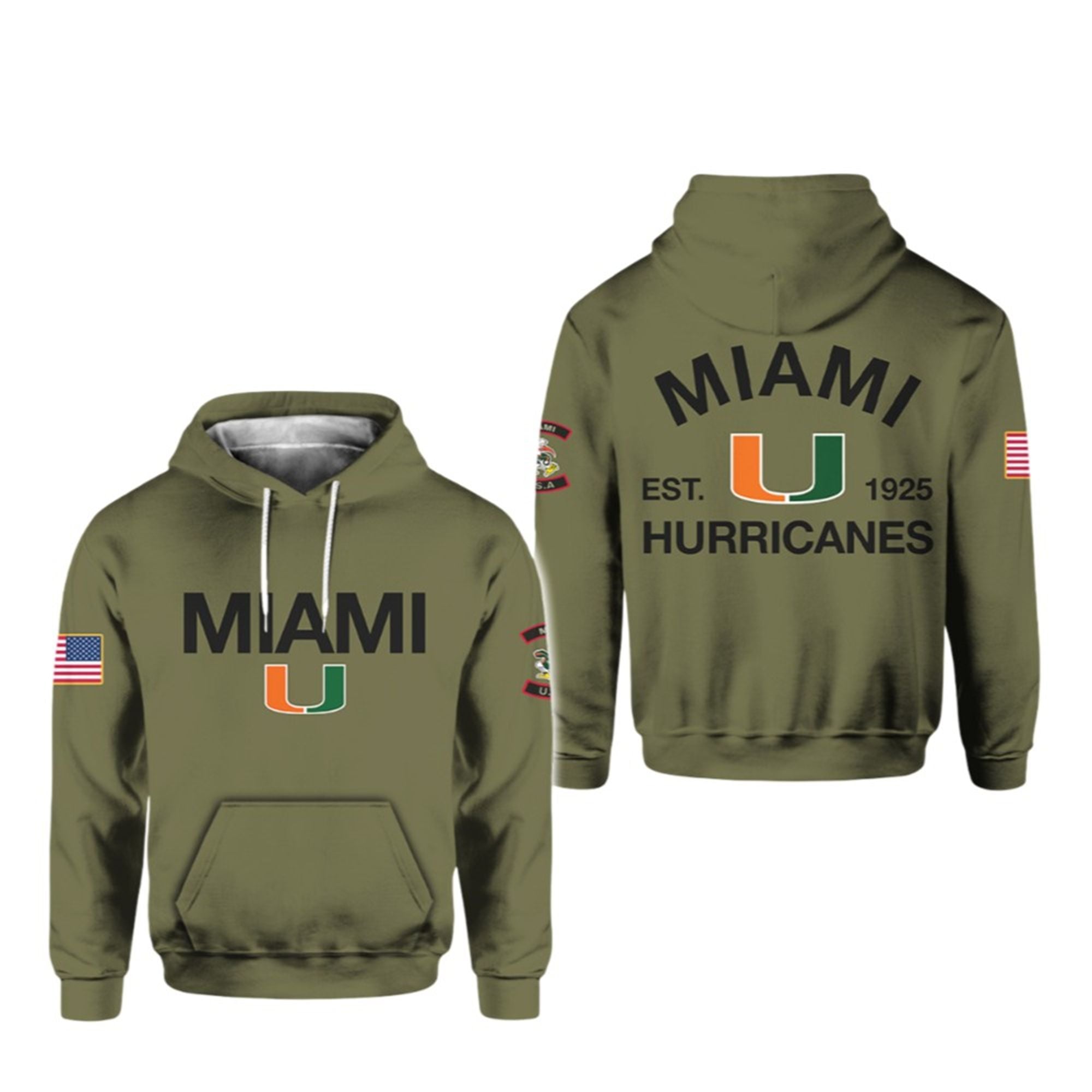 This December, upgrade your fan wardrobe with a piece that celebrates a century of excellence. The new Miami Hurricanes Military Appreciation Hoodie honors the university’s founding year with a distinct “Est. 1925” graphic on the back, set against a military-inspired olive drab background. It’s more than just game-day apparel; it’s a salute to service and a nod to the Hurricanes’ enduring legacy.