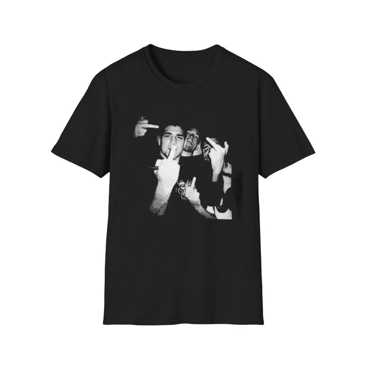 The shirt features a striking, high-contrast black-and-white graphic of legends Nick and Nate Diaz. The imagery captures the brothers in their most authentic state—delivering their signature, unapologetic middle-finger salute to the cameras. This is not just a tribute to the Diaz brothers; it is uniquely associated with Mike Perry, who famously wore this exact visual during a high-stakes combat sports press conference.