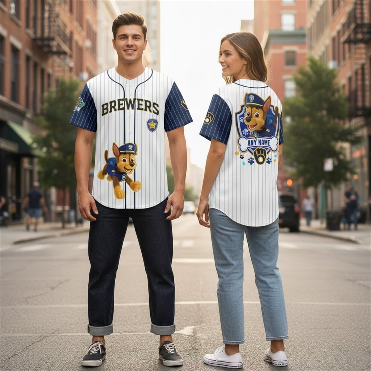 The 2026 season has introduced some of the most creative theme nights in history, but nothing captures the hearts of the youngest “Junior Brewers” like the Paw Patrol Night Jersey. This isn’t just a piece of fan gear; it’s a bridge between generations. The jersey features a crisp white base with classic navy pinstripes, accented by bold “Milwaukee” script in the team’s signature gold. The true highlight is Chase, the athletic and disciplined leader of the Paw Patrol, prominently displayed on both the front and the back.