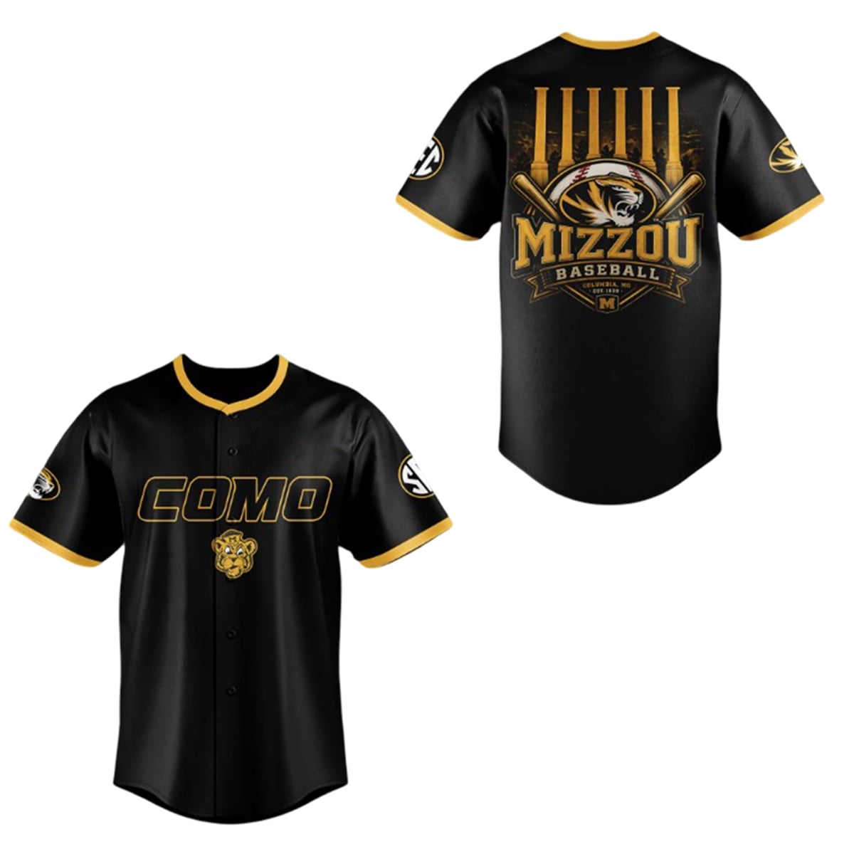 Capture the electric atmosphere of Columbia with Missouri Tigers Como Night 2026 Jersey. Designed exclusively for the most dedicated college baseball fans in the SEC, this striking black-and-gold piece celebrates the heart, soul, and history of Mizzou’s beloved hometown. Whether you are cheering loudly from the stands at Taylor Stadium or representing your beloved alma mater across the country, this visually captivating apparel ensures your team spirit is unmistakably visible.