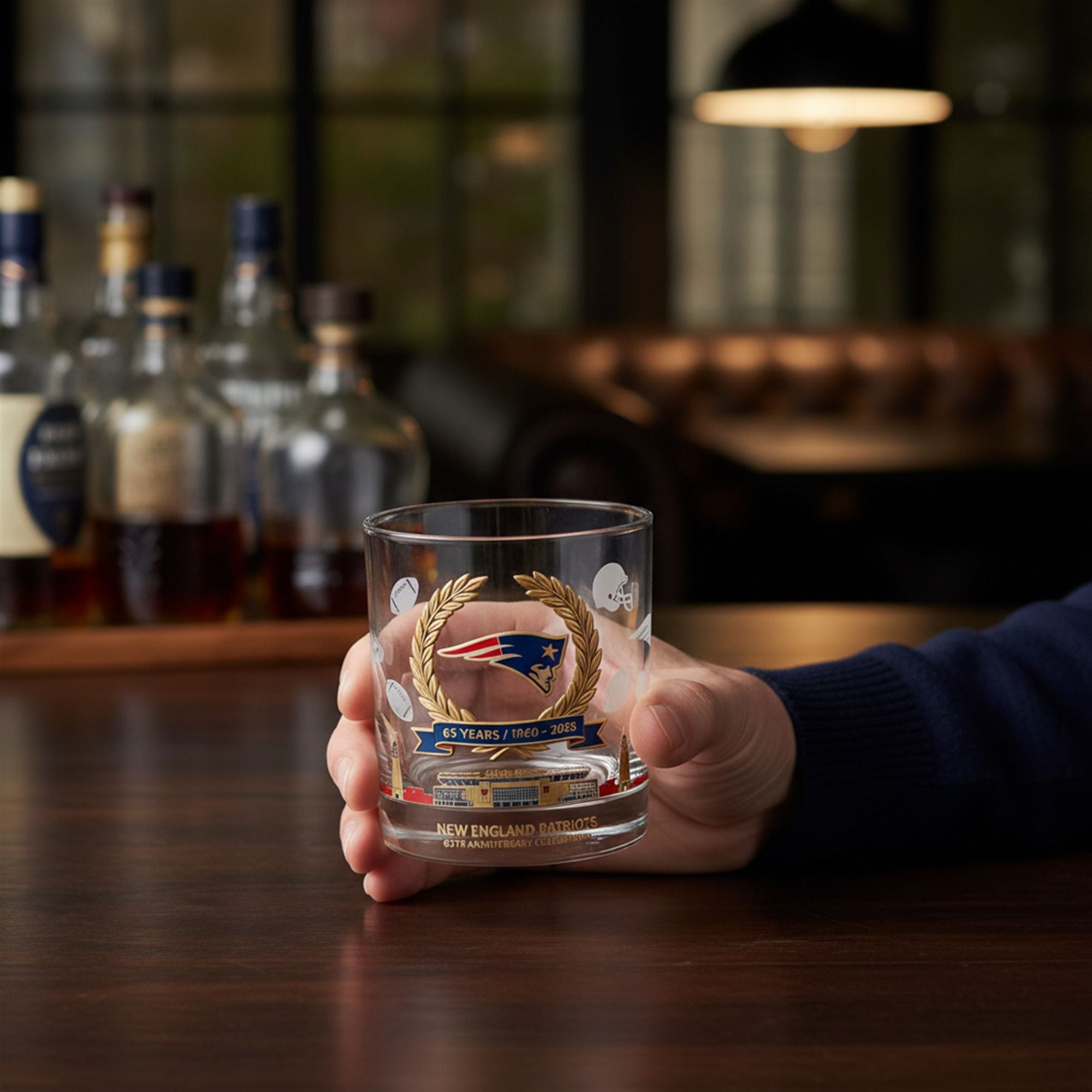 New England Patriots 65Th Anniversary Celbration Whiskey Glass – Celebrating Six Decades