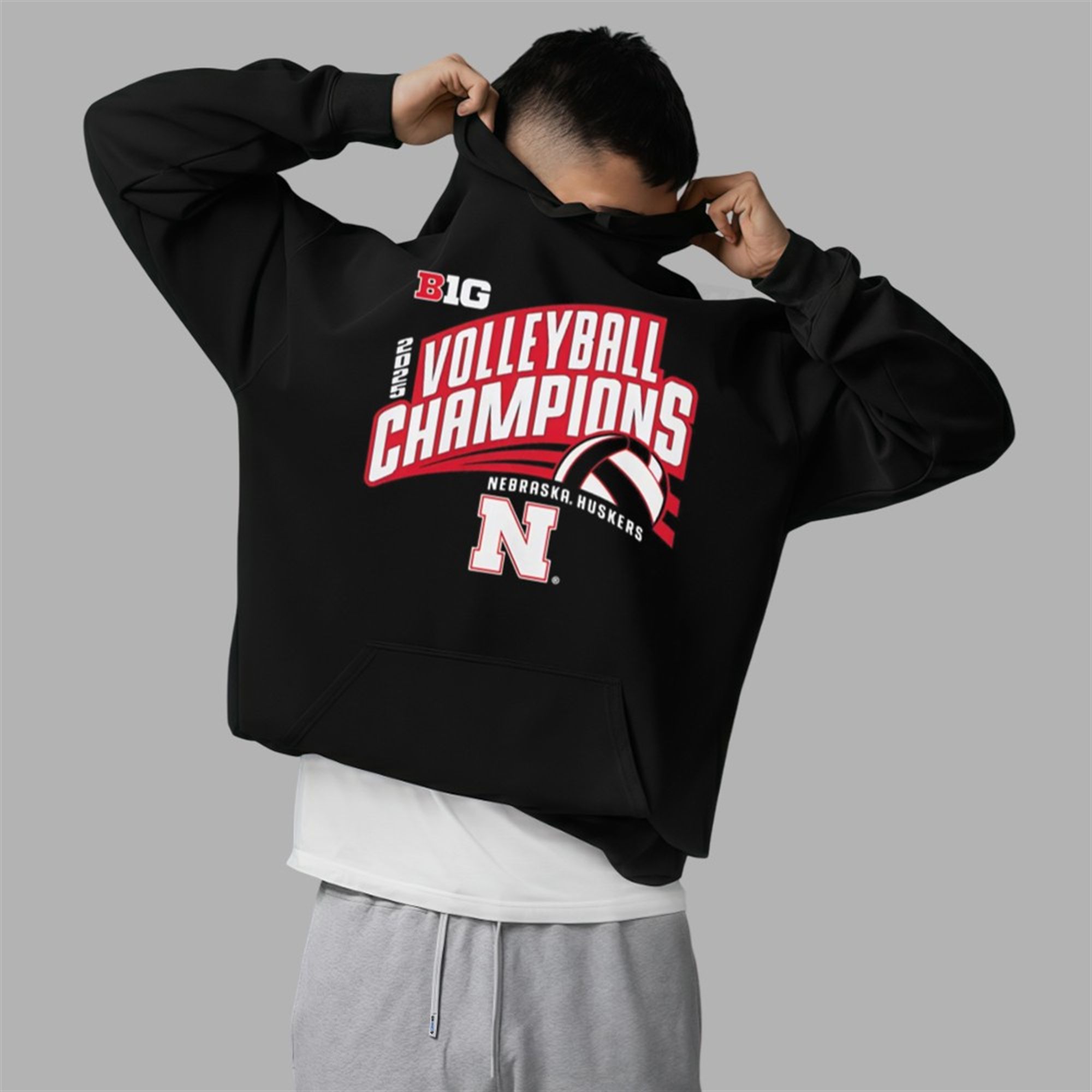 The centerpiece of this shirt is the dynamic “Volleyball Champions 2025” graphic, emblazoned in the signature Scarlet and Cream colors. The design proudly displays the “B1G” conference logo and the Nebraska “N,” anchoring the text with the weight of tradition. A stylized volleyball graphic sweeps across the center, adding motion and energy to the layout. The high-contrast red and white lettering pops against the black fabric, ensuring your fandom is visible from the nosebleed seats to the checkout line.