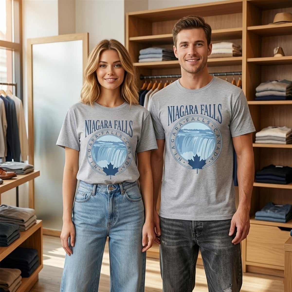 This garment operates as much more than a standard travel memento; it is a wearable tribute to one of the Earth’s most powerful natural phenomena. Niagara Falls represents unstoppable force, natural beauty, and the bridging of international borders. By focusing explicitly on the Canadian side—widely celebrated for offering the most expansive and panoramic views of the Horseshoe Falls—the design pays homage to epic landscapes and limitless outdoor exploration. The strategic inclusion of the maple leaf transforms the piece into a proud symbol of Canadian heritage, evoking a profound sense of wanderlust, adventure, and respect for the natural world.