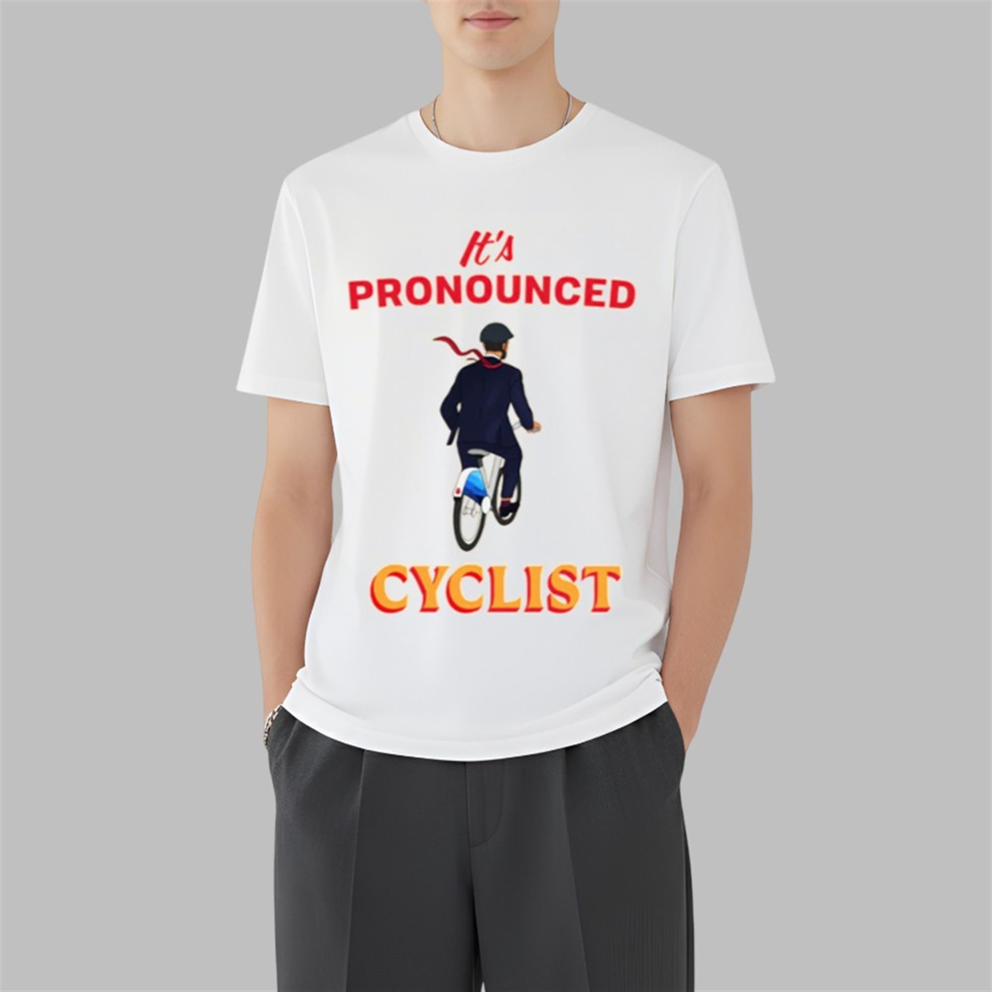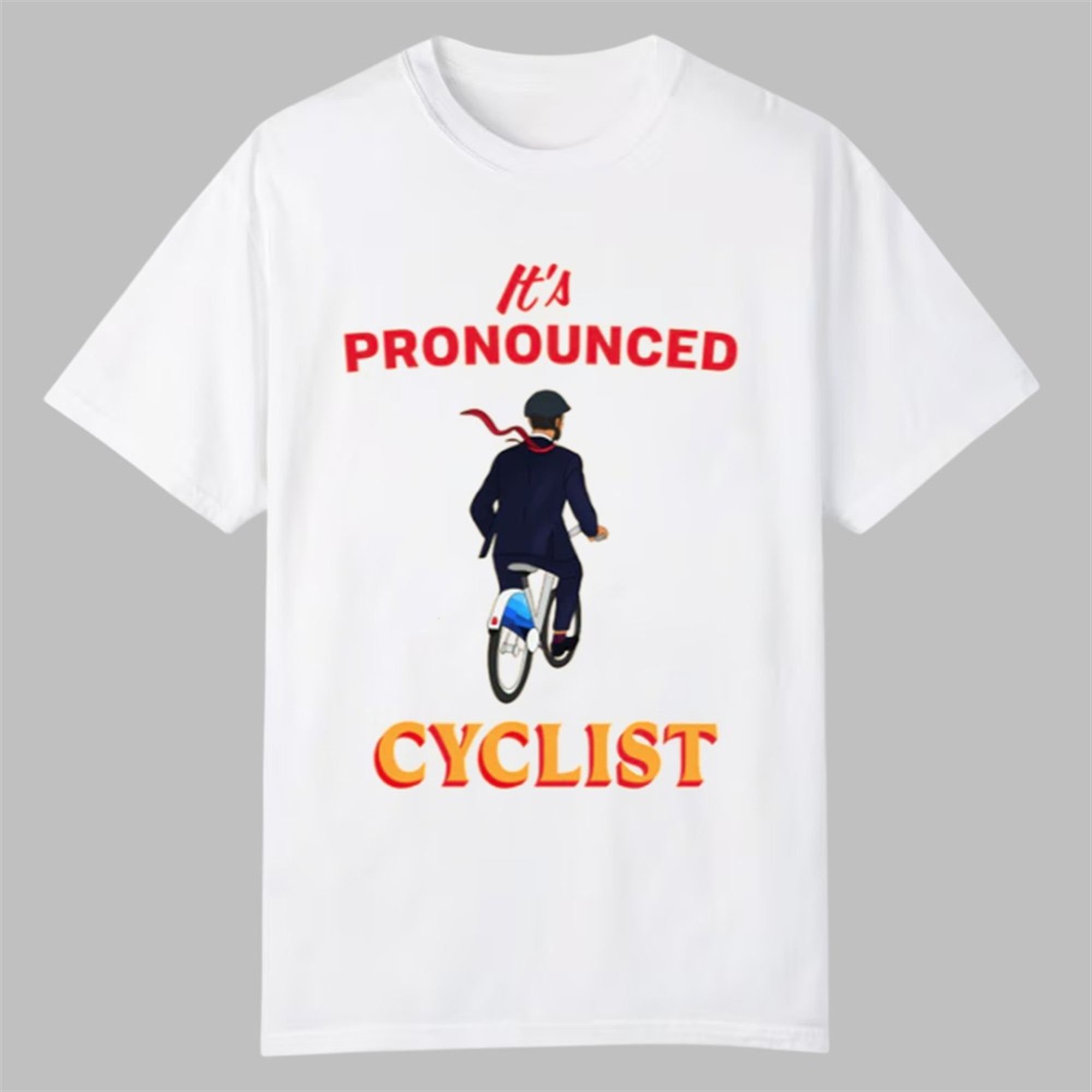 Capture the spirit of New York City’s shifting political landscape with the It’s Pronounced Cyclist Graphic Tee. This design immortalizes the now-legendary exchange that rallied riders across the five boroughs. The crisp, retro-inspired graphic depicts a suited figure riding away on a bike—a direct homage to the viral campaign clip—framed by bold, assertive typography.