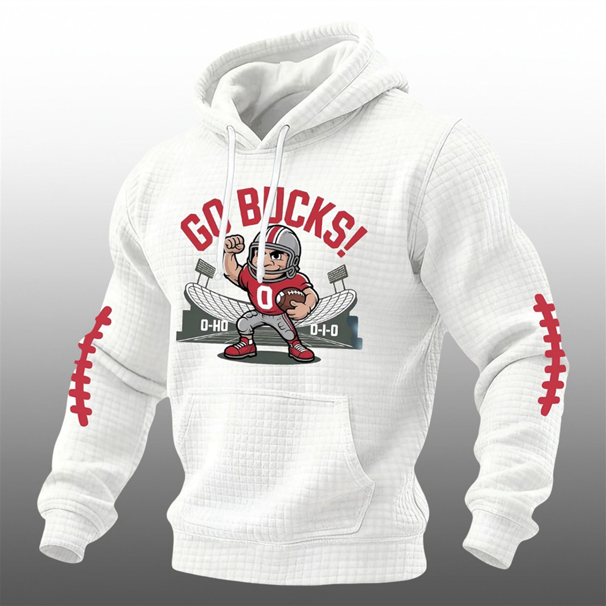 Elevate your game day rotation with the Ohio States Football Go Bucks Waffle Hoodie, a standout piece designed for the ultimate fan. This hooded sweatshirt captures the electric atmosphere of the Horseshoe with a dynamic graphic featuring the beloved mascot gearing up for victory.