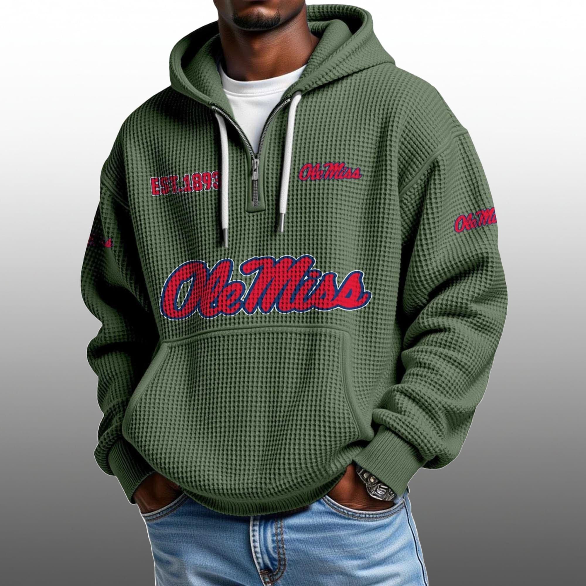 2026 Ole Miss EST 1893 Half Quarter Zip Waffle Hoodie – Tradition Meets Textured Comfort