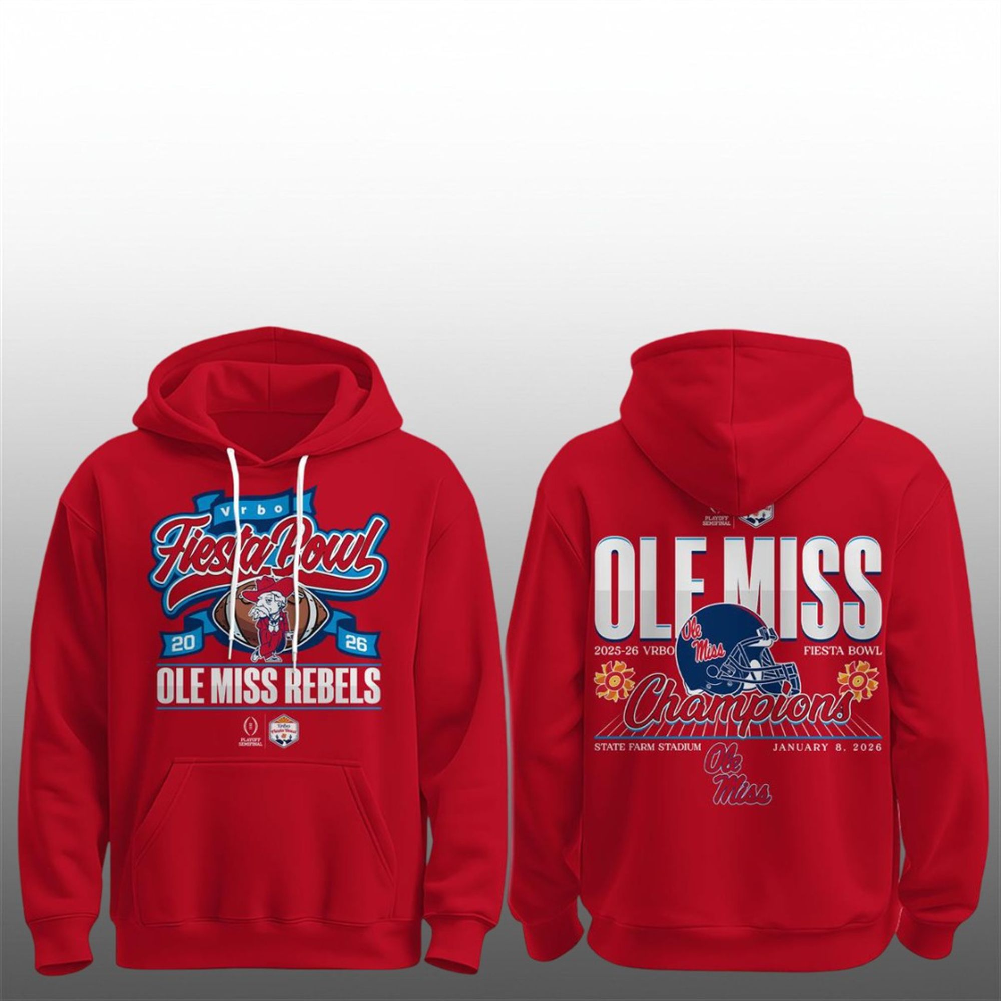 Are you ready to show off your bragging rights? The Ole Miss Rebels own the desert! Commemorate the massive January 8, 2026 win with the exclusive Ole Miss Rebels VRBO Fiesta Bowl Champions Hoodie. Designed for the most dedicated fans, this hoodie captures the glory of the postseason with bold back graphics detailing the “Champions” title and the venue.