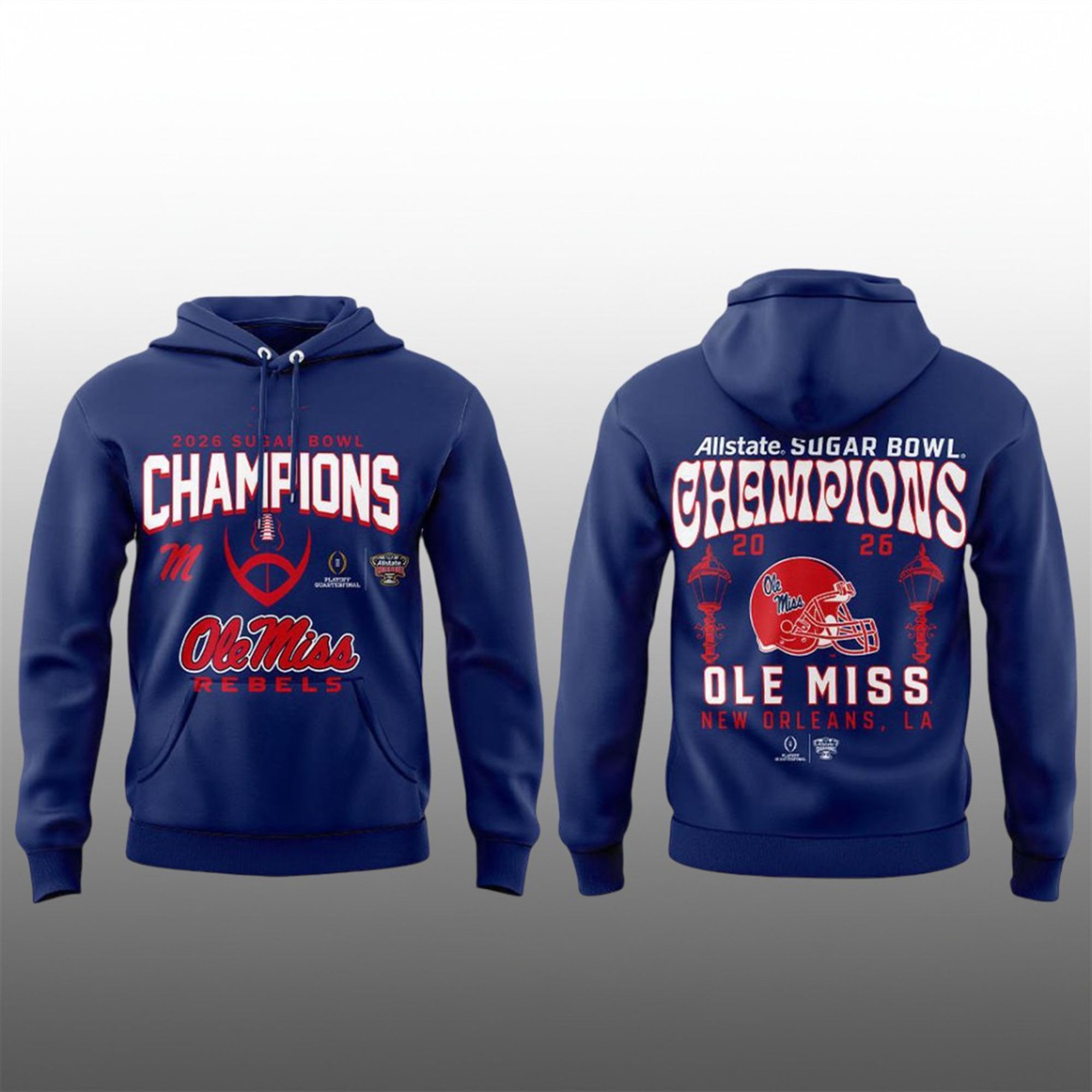 Capture the electricity of the Caesars Superdome with the Ole Miss Rebels Allstate Sugar Bowl Champions 2026 Shirt. This piece of playoff history commemorates the Rebels’ stunning 39-34 upset over the Georgia Bulldogs in the College Football Playoff Quarterfinal.
