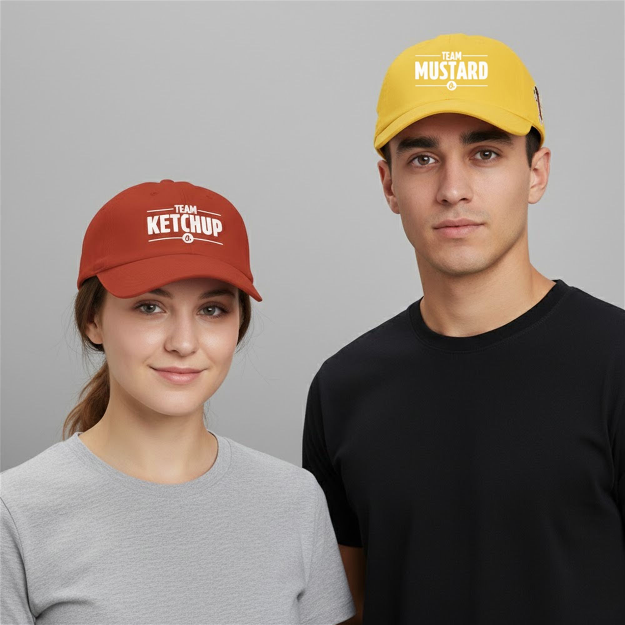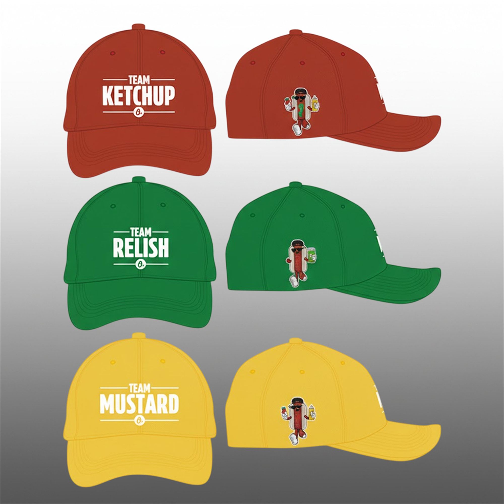Team Ketchup: A bold red cap featuring the confident, often dominant Ketchup character.