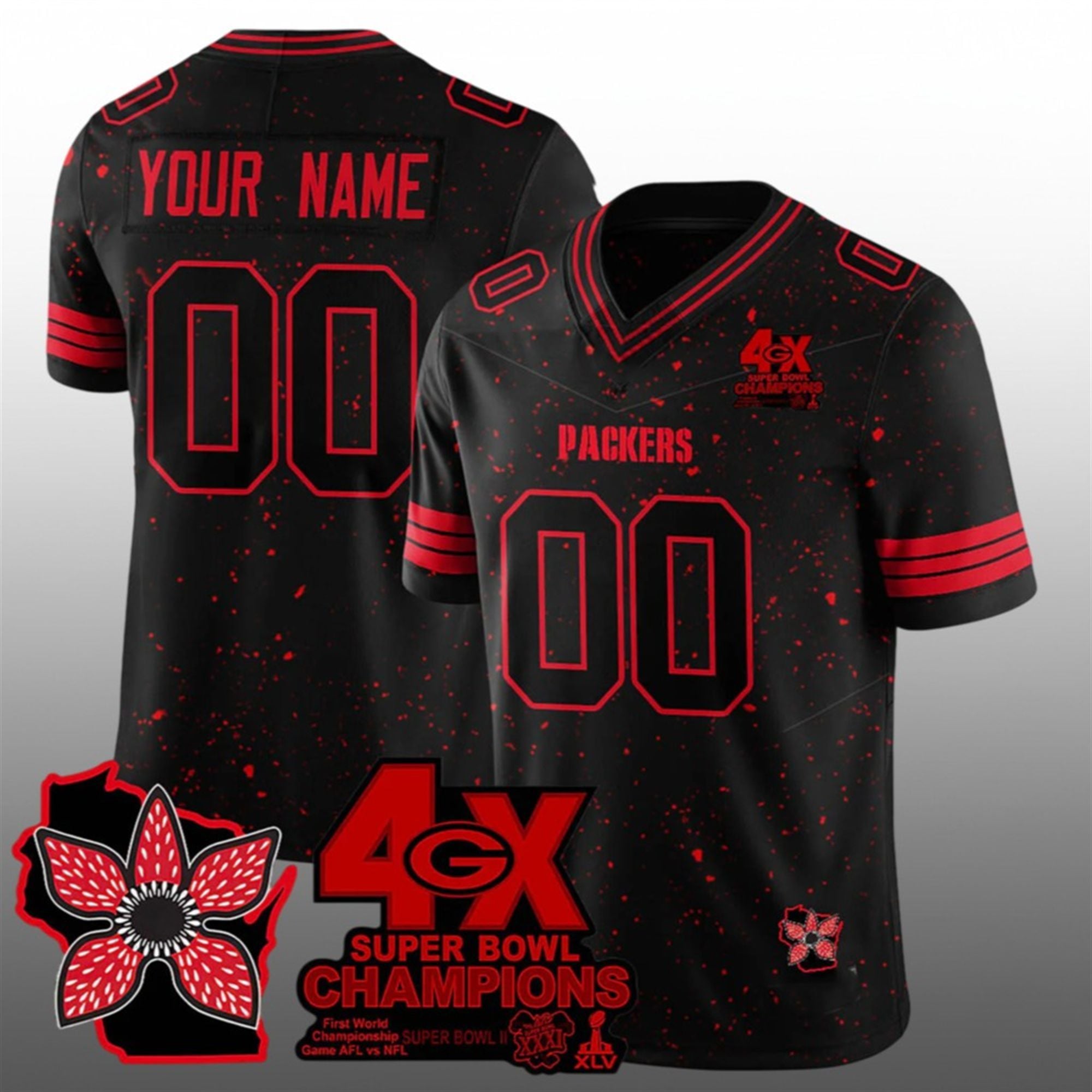 Packers Stranger Things 4X Bowl Champions 2026 Jersey | Enter the Upside Down of Lambeau