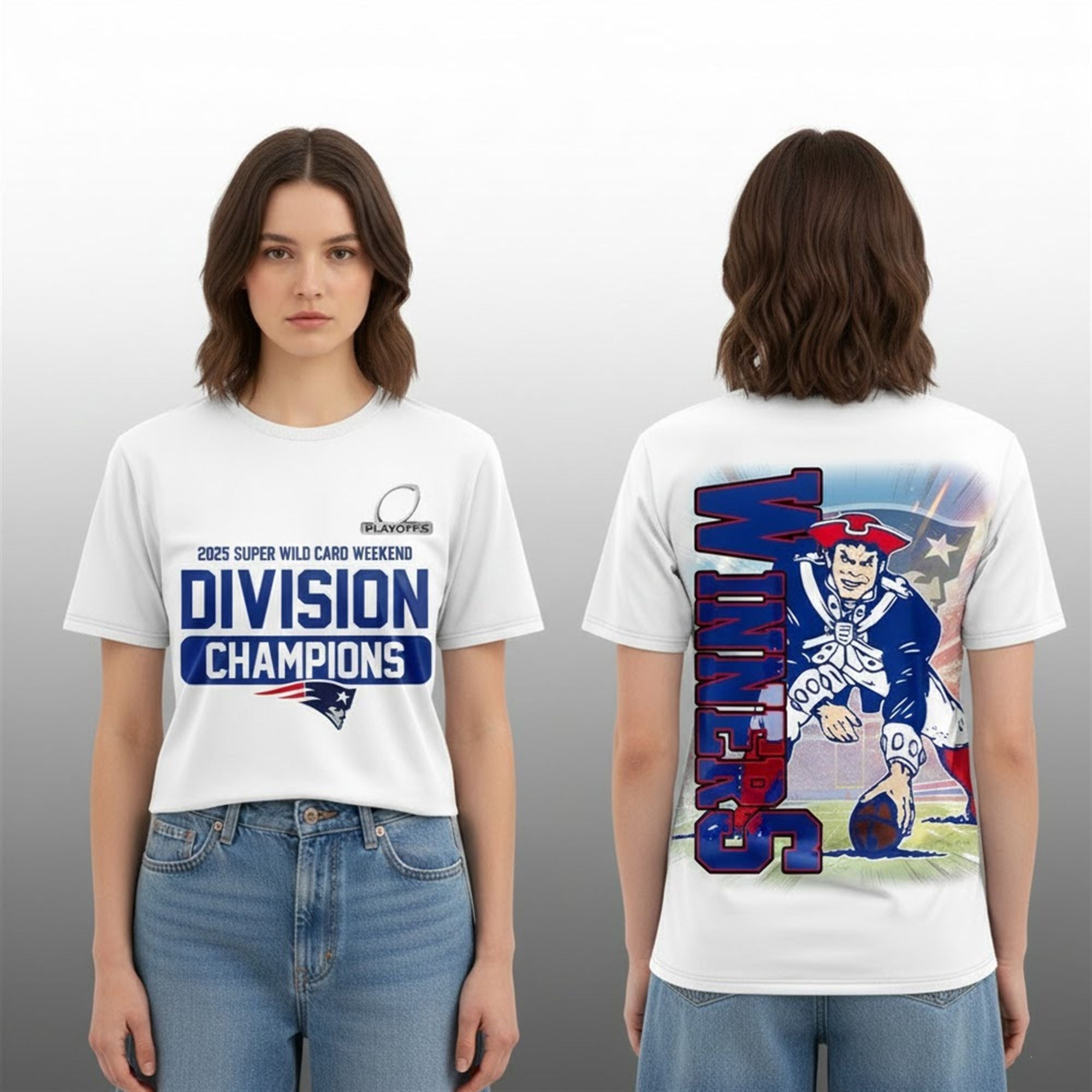 Gear up for the biggest game at Gillette Stadium in years with the Patriots 2025 Super Wild Card Weekend Division Champions Shirt. As New England prepares to host the Chargers for Super Wild Card Weekend, this shirt serves as the ultimate uniform for the “Foxboro Faithful.”