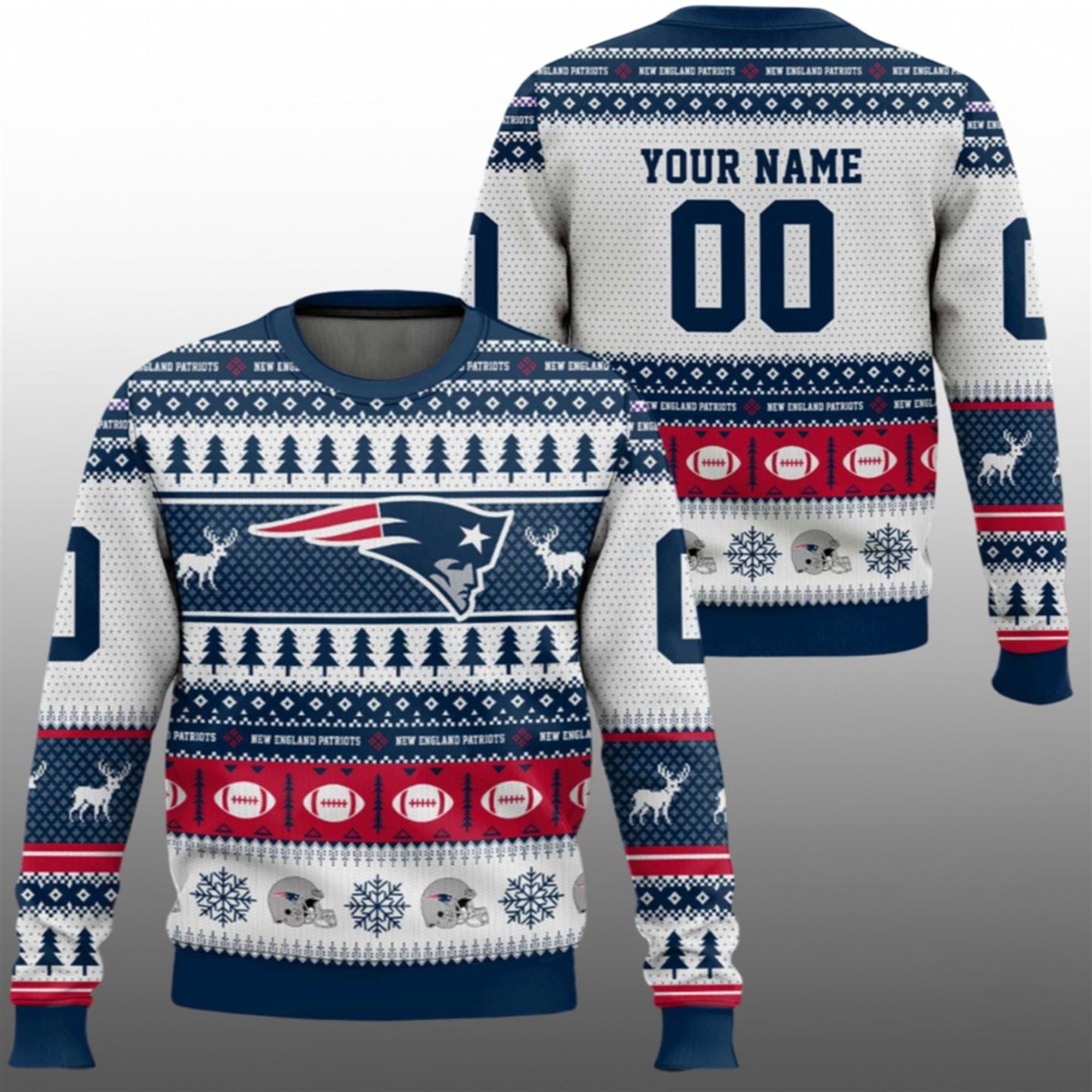 Searching for the perfect gift for the Patriots fan who has everything? Look no further than this Customizable New England Patriots Holiday Sweater. Unlike standard team merchandise, this unique piece allows you to add a personal touch with a custom name and jersey number on the back.