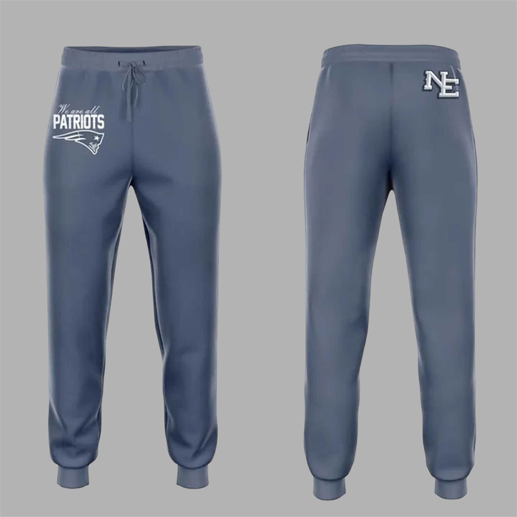 A Unifying Message: Beneath the logo, the elegant script “We Are All Patriots” serves as the hoodie’s heart and soul. This powerful slogan transcends individual games and players, celebrating the collective community of fans that forms the true foundation of the team.