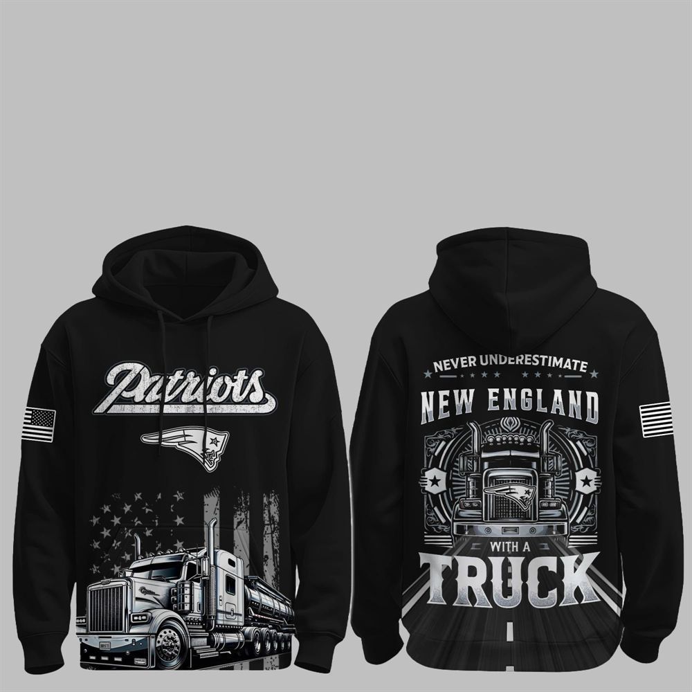 Don’t miss your chance to own a piece of Patriots history that honors our nation’s highway heroes. The 2025 New England Patriots Never Underestimate New Rngland With A Truck Hoodie is a powerful symbol of strength, loyalty, and American spirit. It combines superior comfort, a head-turning design, and a meaningful tribute into one essential piece of fan gear. Order yours today and proudly represent the unstoppable force of the New England Patriots and the incredible drivers who fuel our nation.