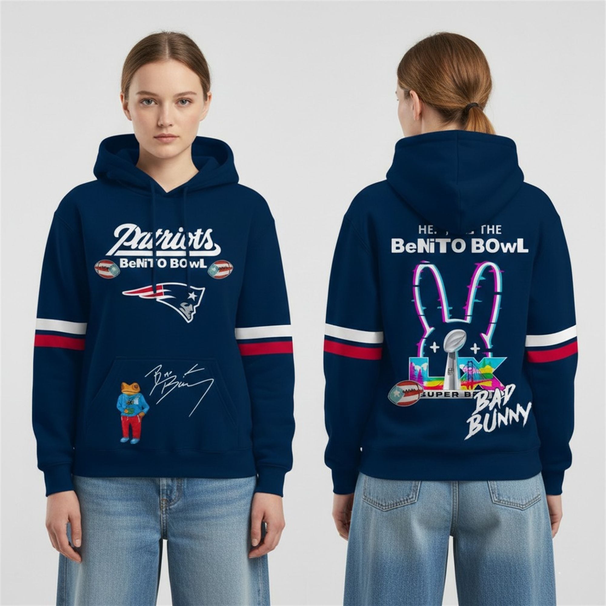 New England Patriots x Bad Bunny Benito Bowl Super Bowl LX Hoodie – Patriots Legacy Meets Urbano Heat