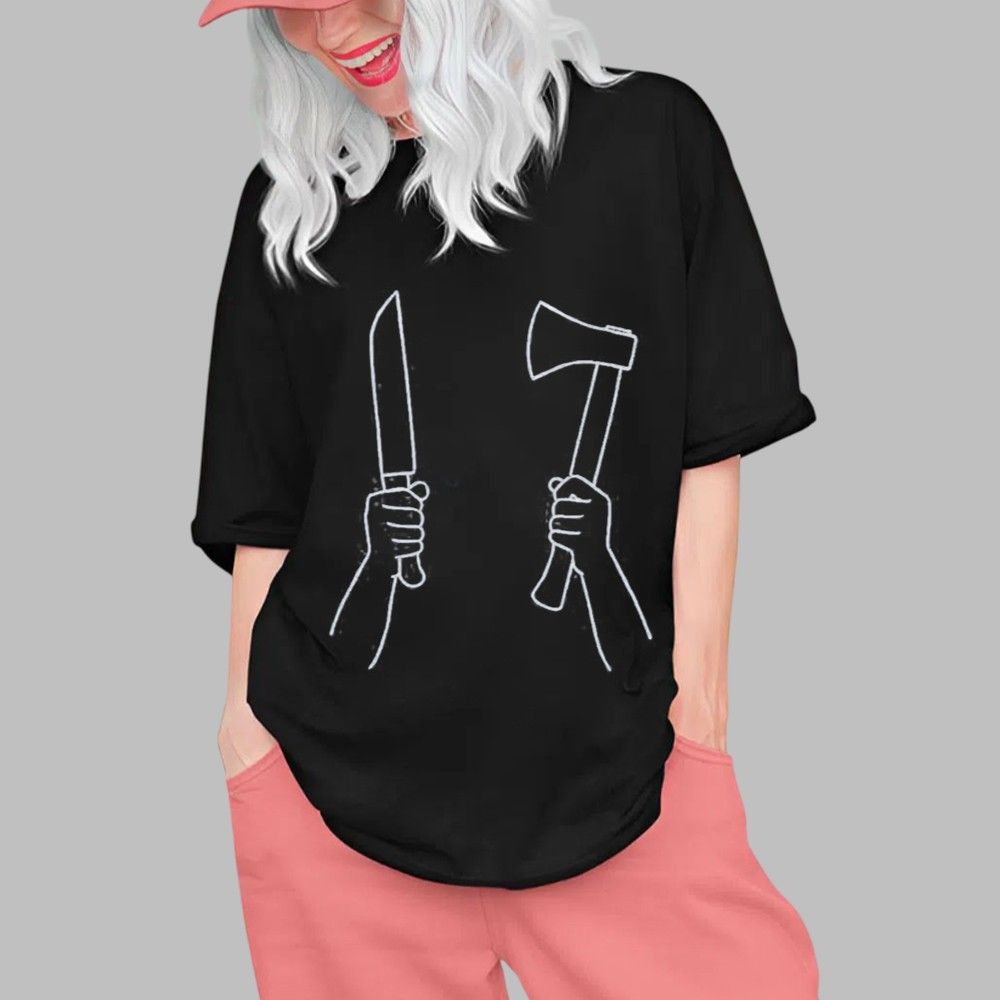 Embrace your fundamental instincts with the Pictish Child Defends Herself From The Advances Of An African Roman Solider Shirt. This isn’t just another shirt; it’s a statement of raw simplicity and rugged independence. Featuring a striking, minimalist line art design of a hand-wielded knife and axe, this tee is crafted for the bold, the self-reliant, and the stylistically discerning. The clean white graphic pops against the premium black cotton, creating a visually arresting piece that is both timeless and edgy. Whether you’re an avid outdoorsman, a horror film aficionado, or a devotee of minimalist streetwear, this shirt speaks your language.