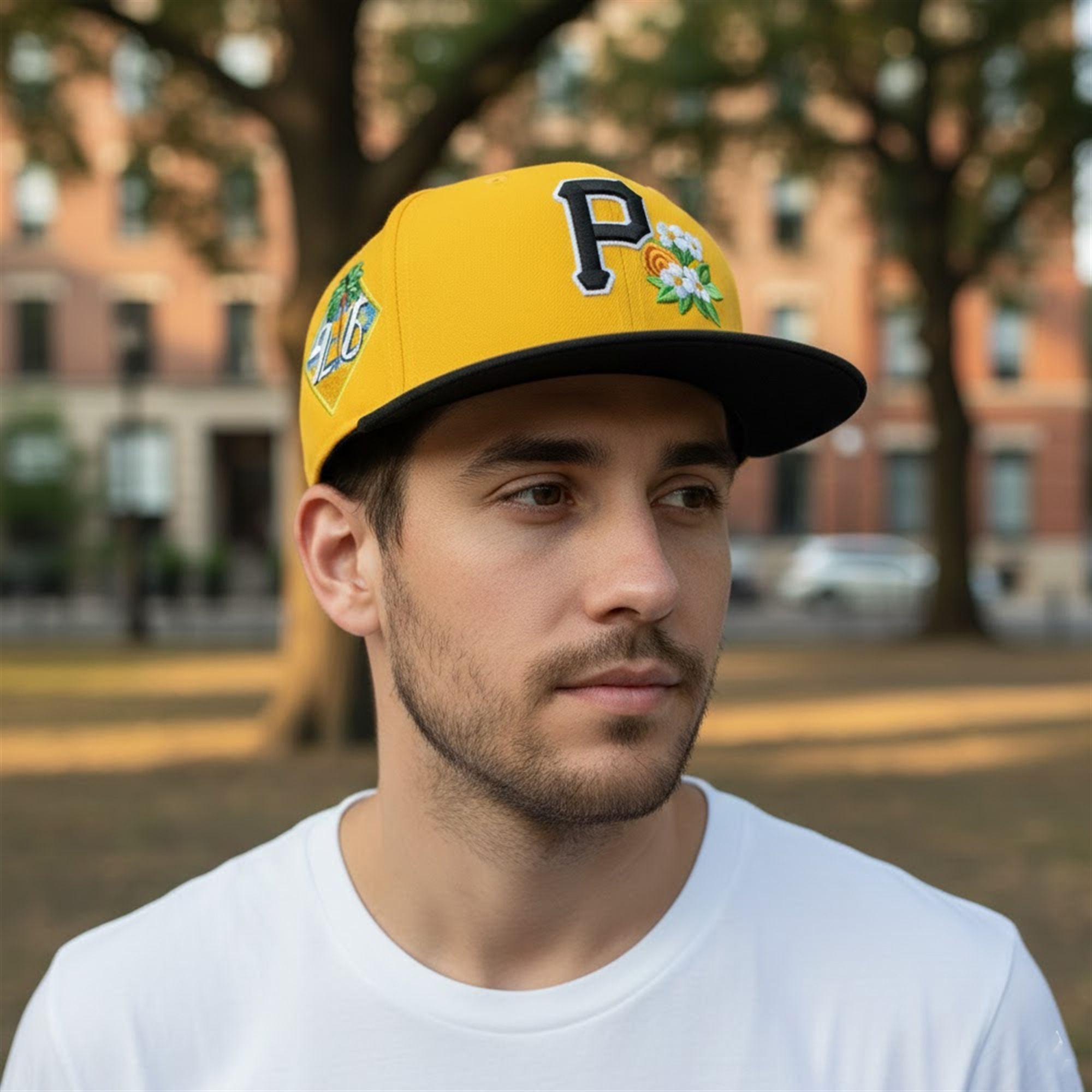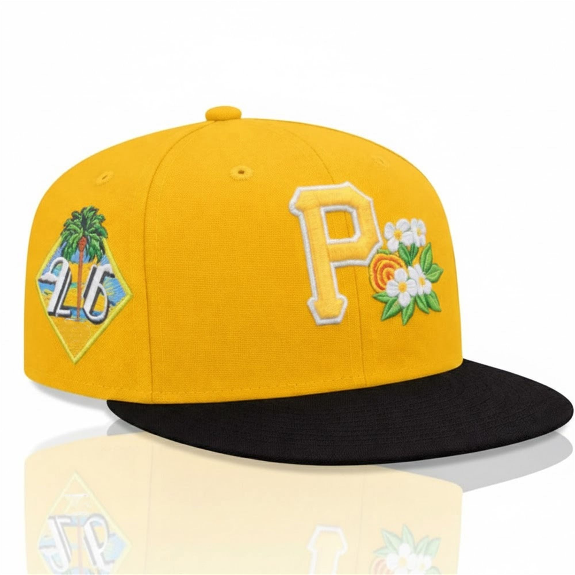 The hat features a striking design that immediately commands attention. The crown is drenched in the team’s signature vibrant yellow, a color synonymous with Pittsburgh sports identity. Contrasting this bright base is a sleek black visor, grounding the look in the traditional Pirates color scheme. The centerpiece, however, is the iconic Pittsburgh Pirates “P” logo, which has been reimagined for the spring season.