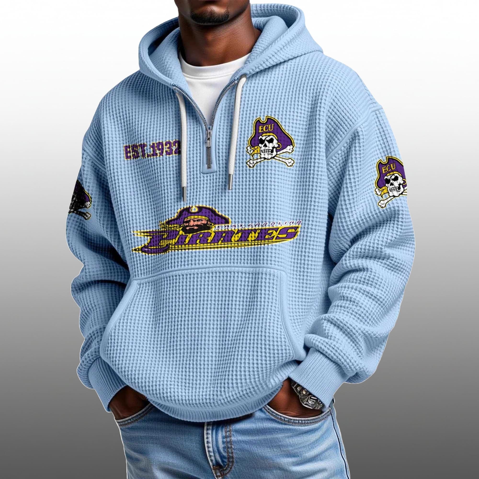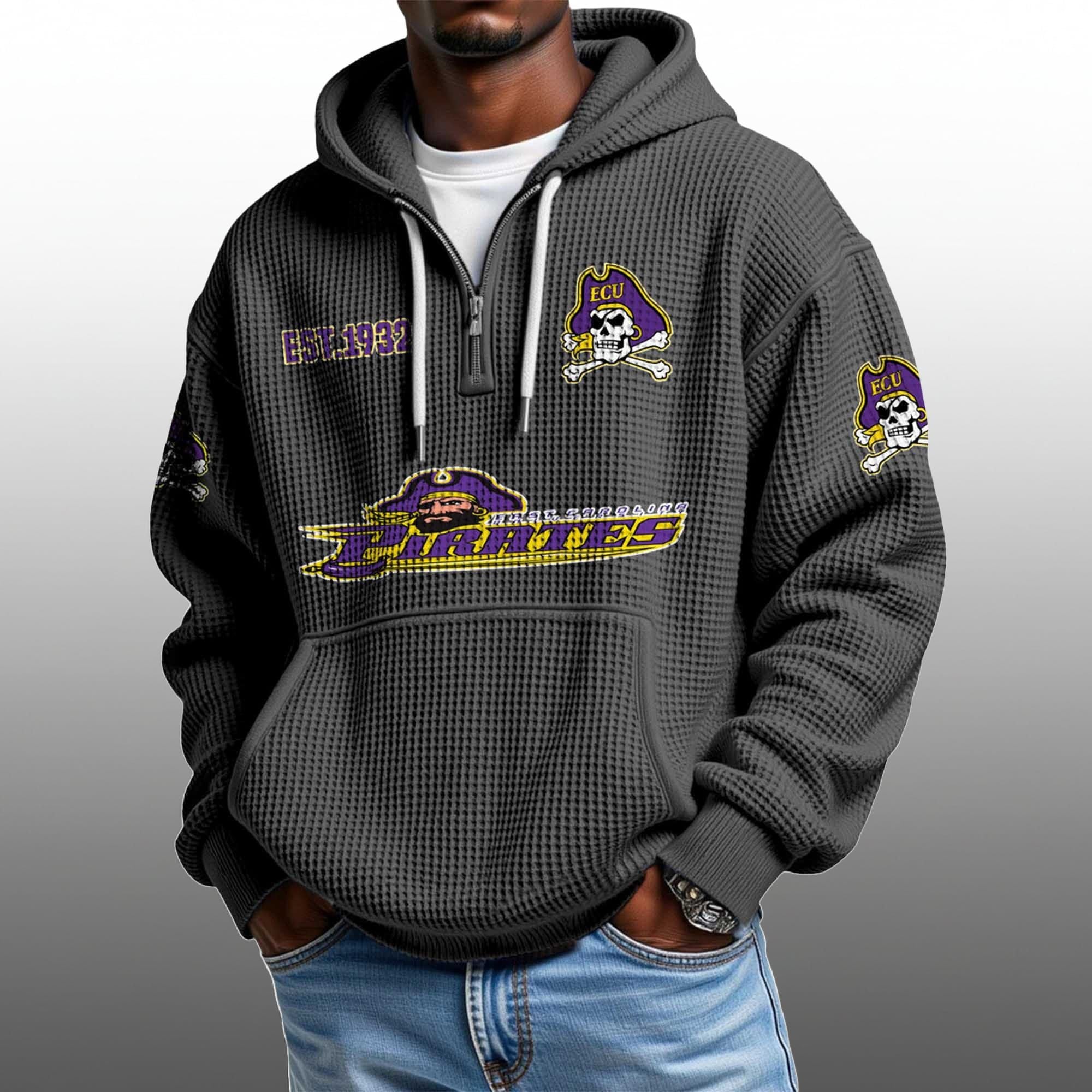 Step up your game day attire with a piece that blends vintage ruggedness with modern comfort. The East Carolina Pirates “Heritage 1932” Waffle-Knit Hoodie is more than just merchandise; it is a tribute to the enduring spirit of Pirate Nation.