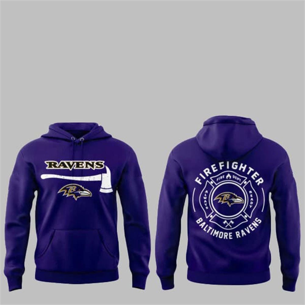 The back of the shirt solidifies this powerful tribute with a professionally crafted, circular emblem reminiscent of a classic fire department crest. Encircled by the words “Firefighter” and “Baltimore Ravens,” the emblem proudly displays the Ravens head logo at its center, flanked by symbols of the fire service. This dual-sided design ensures your support is visible from every angle, making it the definitive piece of apparel for showing your appreciation for Baltimore’s finest heroes.