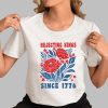 Declare your independent spirit with our Rejecting Kings Since 1776 Shirt. This isn’t just a piece of clothing; it’s a statement of a principle that has defined a nation for centuries. Featuring a bold, folk-art-inspired design with vibrant red florals and cool blue leaves, this t-shirt beautifully captures the revolutionary ethos. The powerful phrase, split between the top and bottom of the design, serves as a proud reminder of America’s foundational ideals.