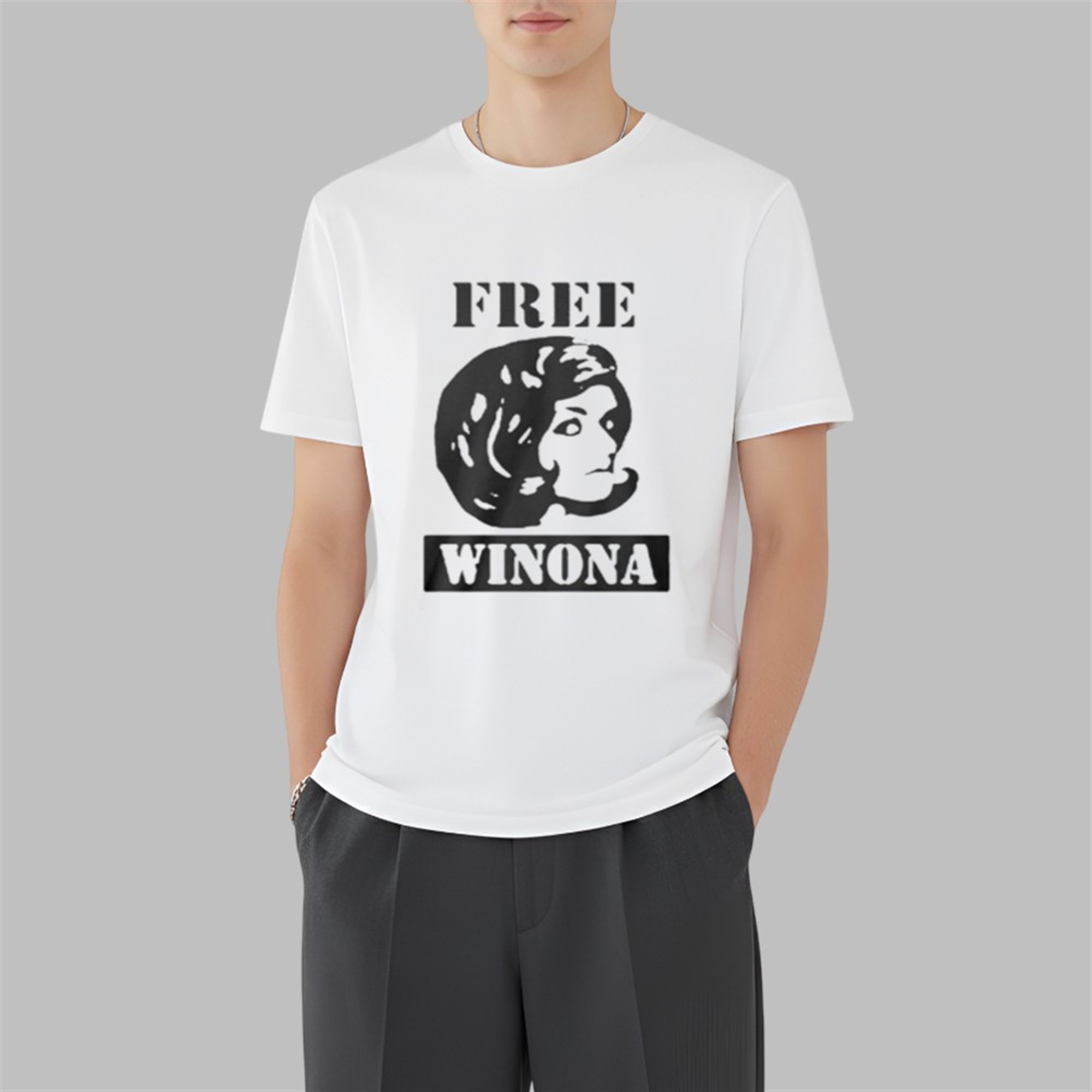 tep back into the era of dial-up, low-rise jeans, and blockbuster video rentals. The early 2000s was a wild time for pop culture, and no story captured the public’s fascination quite like Winona Ryder’s 2001 shoplifting incident. Almost overnight, the “Free Winona” slogan appeared, a witty, subversive, and ironic response to the media frenzy. It became an instant symbol of counter-culture, and now, Robert Rich offers the definitive version of this iconic tee.