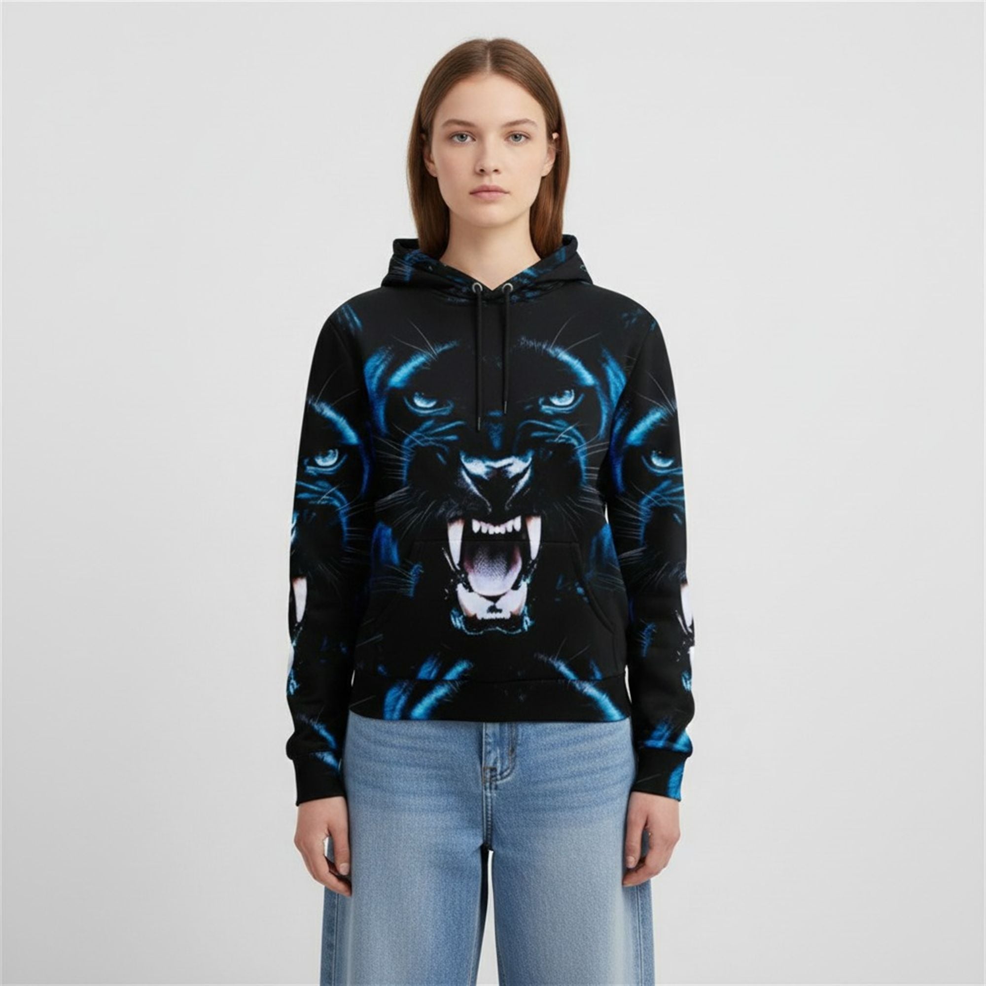 In the evolving landscape of 2026 fashion, merchandise is no longer just about logos; it is about making a statement. Thehoodie is the epitome of “loud luxury” in the streetwear space. This product offers a distinct visual narrative, combining the ferocity of a wild panther with the electric blue hues often associated with Carolina sports culture—a nod to R-Truth’s well-known hometown pride.