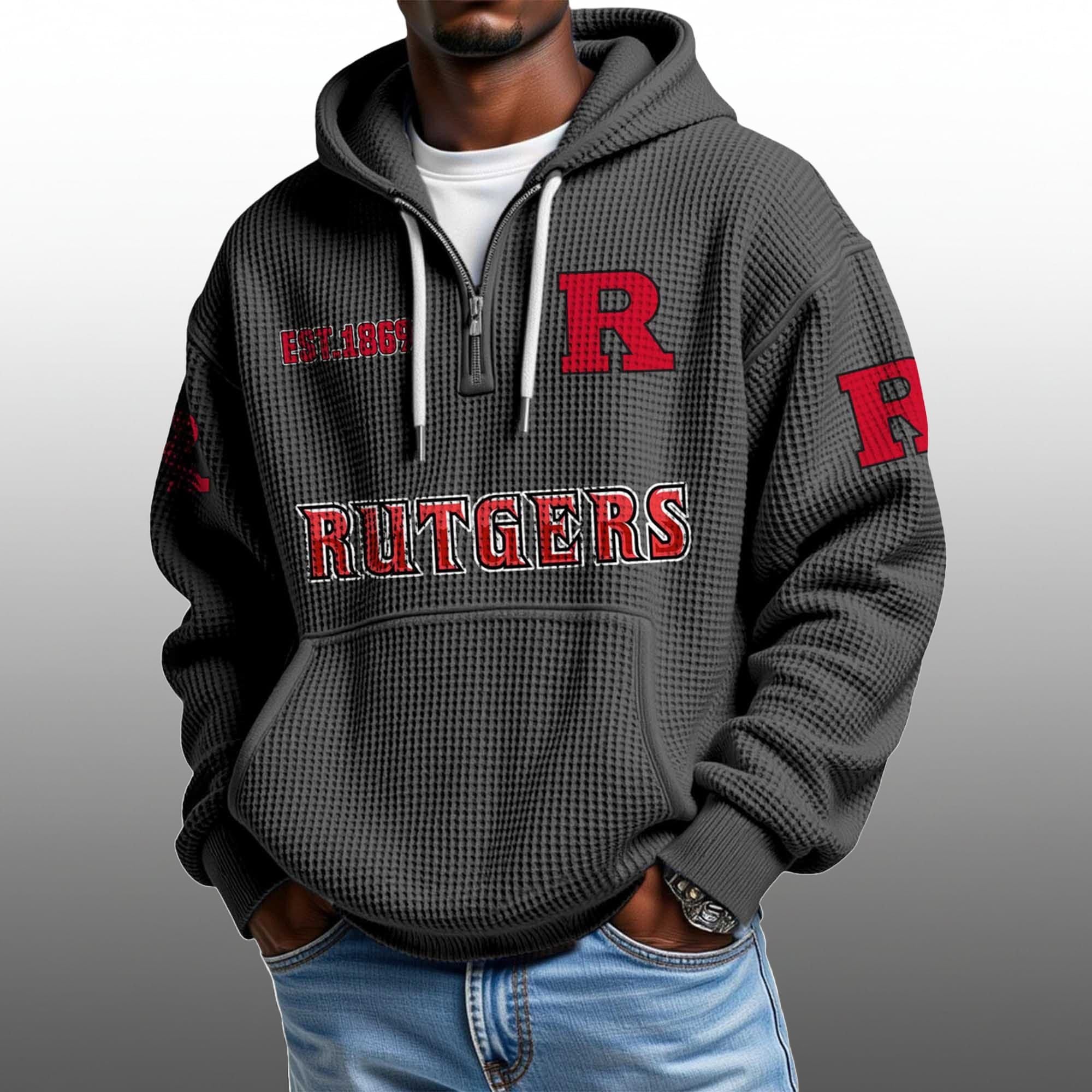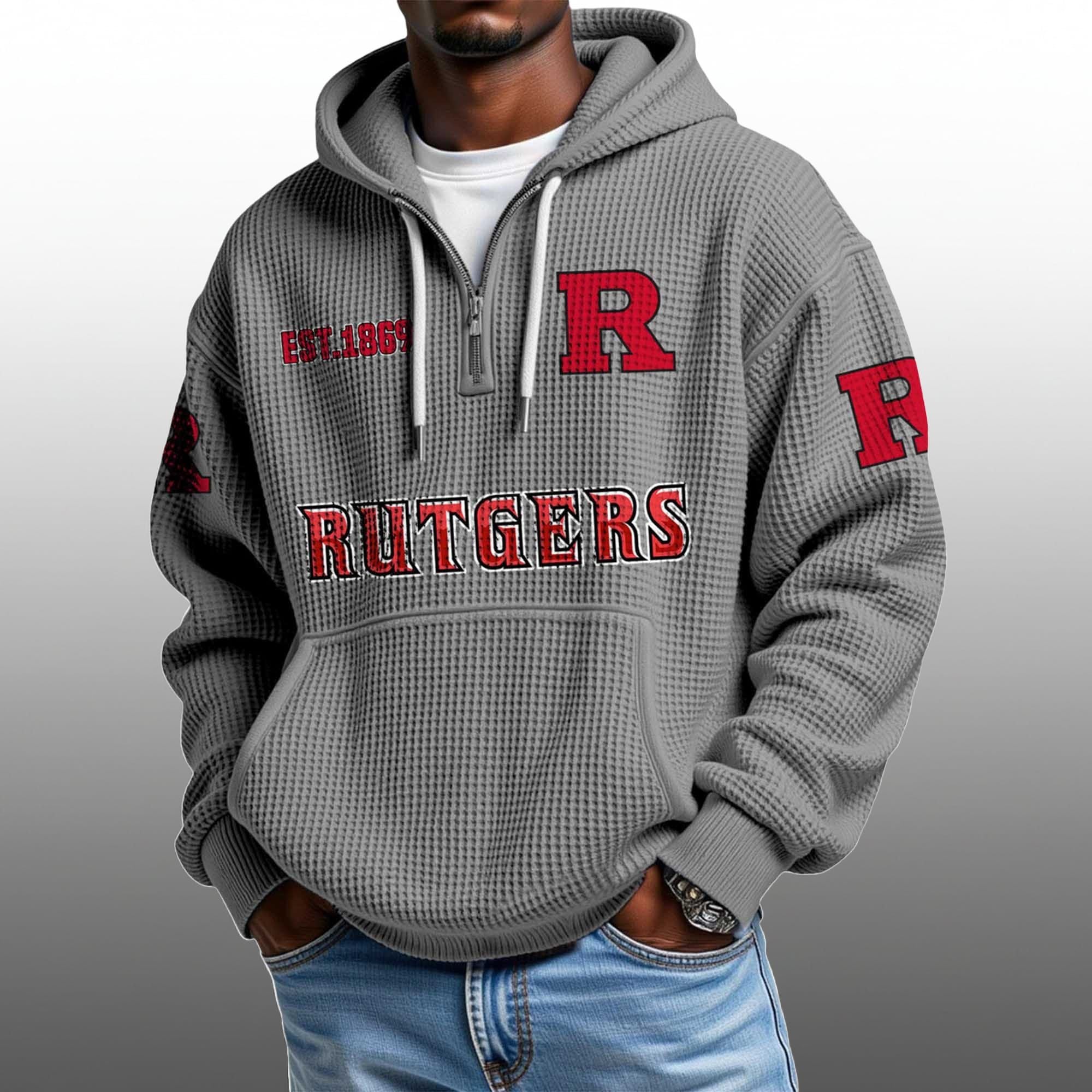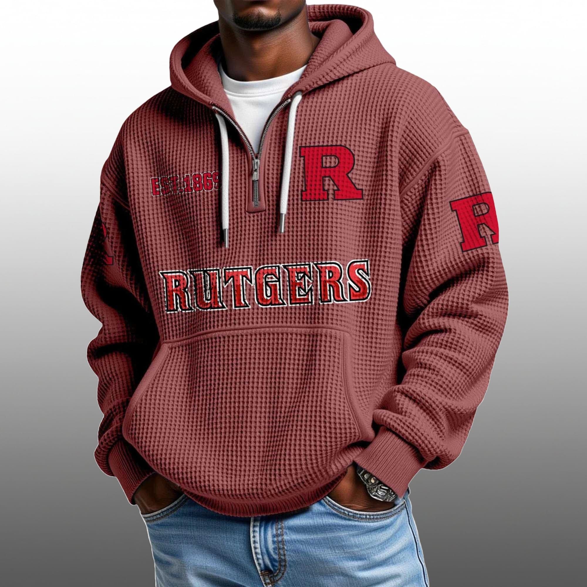 2026 Rutgers EST 1869 Half Quarter Zip Waffle Hoodie – Where Tradition Meets Texture