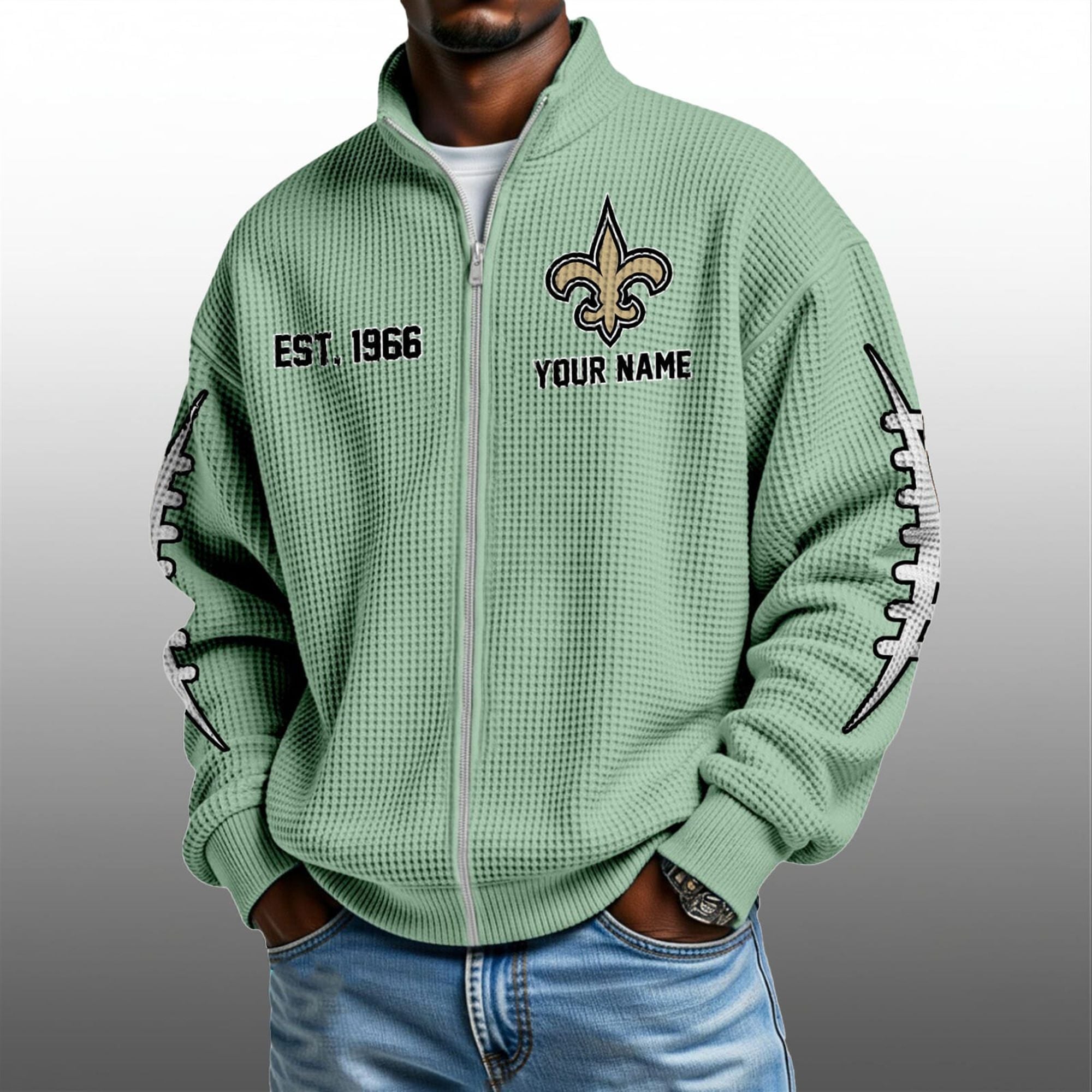 Searching for the perfect gift for the Saints fan who has everything? This Custom Saints Waffle Knit Zip Pullover combines vintage athletic vibes with contemporary streetwear trends. The distinctive waffle texture provides a rugged, layered look without bulk, making it an ideal choice for the cooling December temperatures of the 2025 season.