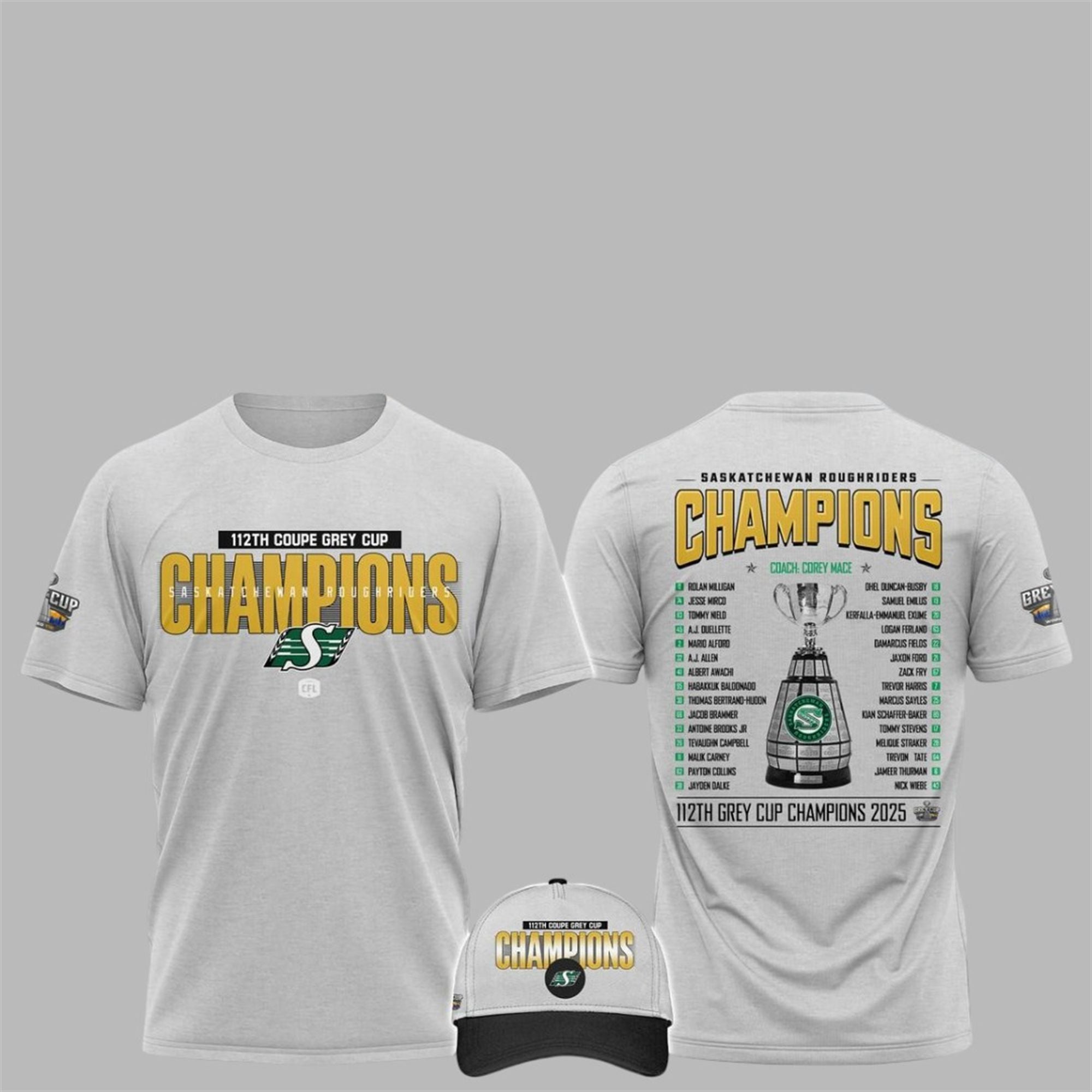 Saskatchewan Roughriders 112th 2025 Grey Cup Champs Shirt | The Roster That Won It All