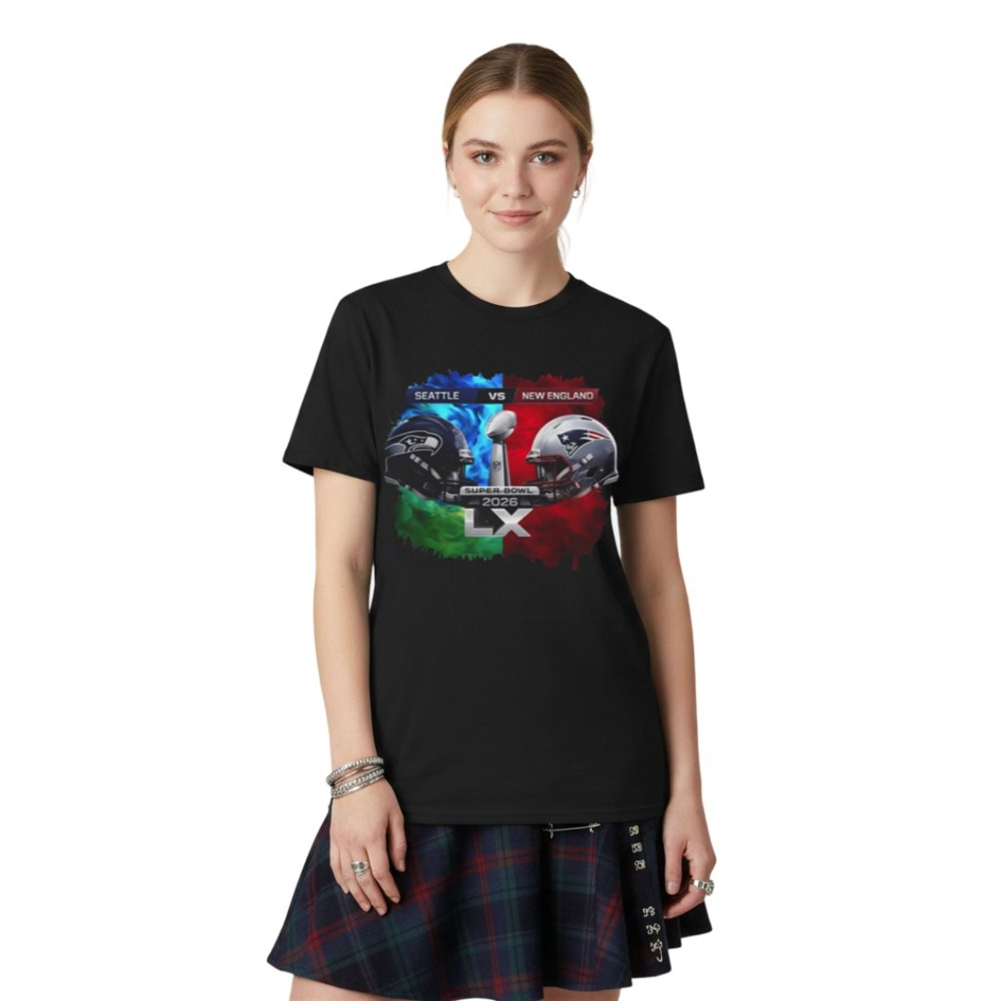 This specific design exploded across social platforms like TikTok and X in late January 2026 due to the “Leaked Script” conspiracy meme. When a prominent insider jokingly tweeted that the “Scriptwriters” had confirmed a Seahawks/Patriots rematch to celebrate the 60th anniversary, this shirt became that viral moment. Fans on both sides began buying it to manifest the matchup, turning the tee into a symbol of fan belief and internet culture. The visual symmetry of the helmets became a popular template for “Who You Got?” polls, driving massive organic engagement and sharing.