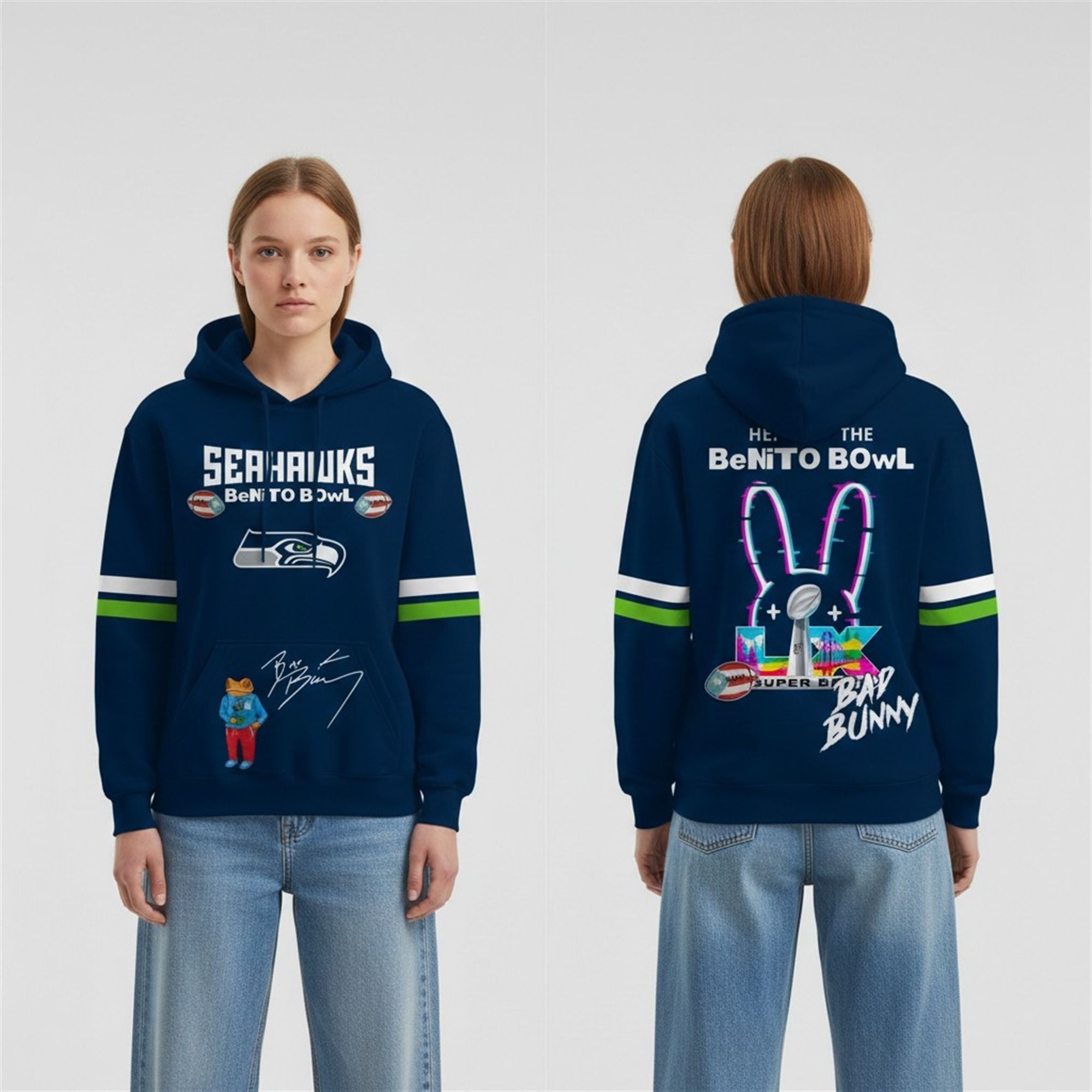 Seattle Seahawks x Bad Bunny Benito Bowl Super Bowl LX Hoodie – Where The 12s Meet El Conejo Malo