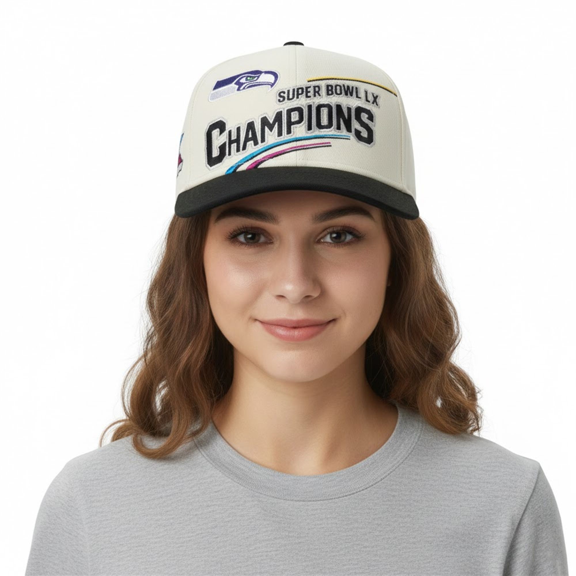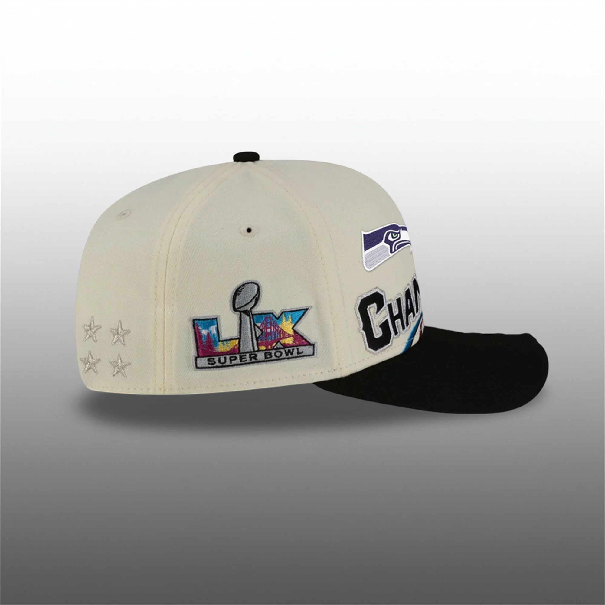 The 2026 season has culminated in a spectacular finish, and the Seattle Seahawks stand alone at the mountaintop. This hat is the definitive piece of fan gear for this era. It features a striking cream and black colorway that breaks away from traditional designs, offering a modern, fashion-forward look that pops in photos and stands out in a crowd.