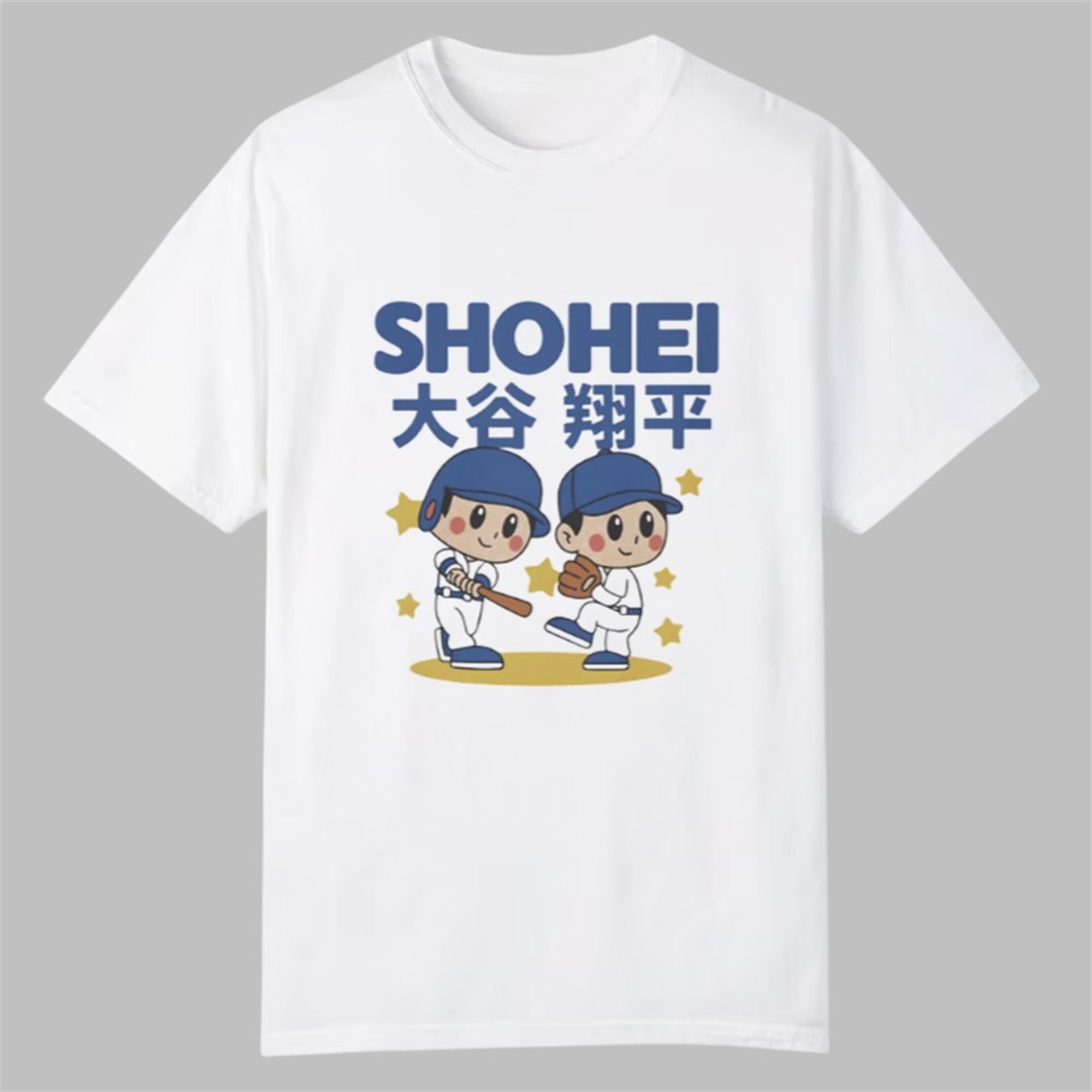 Step up to the plate and celebrate baseball’s modern-day phenomenon with the Shohei Ohtani “Two-Way Star” Cartoon Tribute T-Shirt. This isn’t just another piece of fan apparel; it’s a vibrant homage to the most dynamic player in the game. The shirt features a uniquely charming cartoon graphic that perfectly captures Ohtani’s dual mastery. On one side, a determined hitter Ohtani is ready to launch a home run, while on the other, a focused pitcher Ohtani prepares to deliver an unhittable pitch.