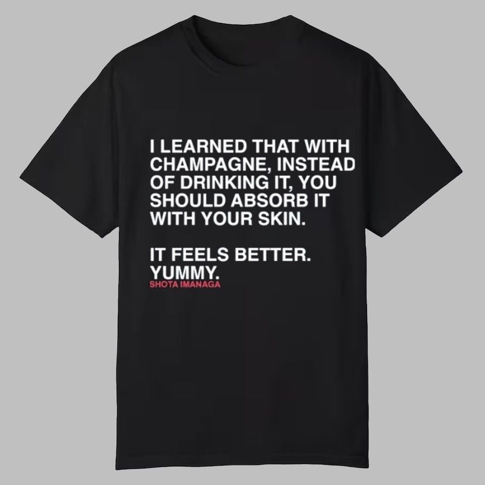 Shota Imanaga I Learned That With Champagne Instead Of Drinking It You Should Absorb It With Your Skin Shirt | Wear a Piece of Viral Baseball History
