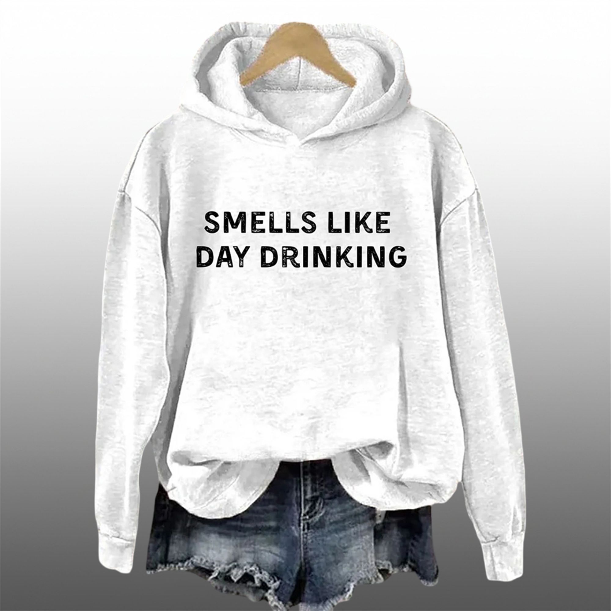 In an era where fashion is increasingly used to signal personality and humor, the hoodie stands out as a champion of “honest fashion.” It bypasses subtle hints and goes straight for the punchline. The distressed, typewriter-style font “Smells Like Day Drinking” offers a nod to vintage grunge bands, cleverly subverting a classic rock reference into a modern party anthem. This isn’t just a hoodie you wear; it’s a hoodie you perform in. It signals to the world that you are off the clock, ready to relax, and open to a good time.