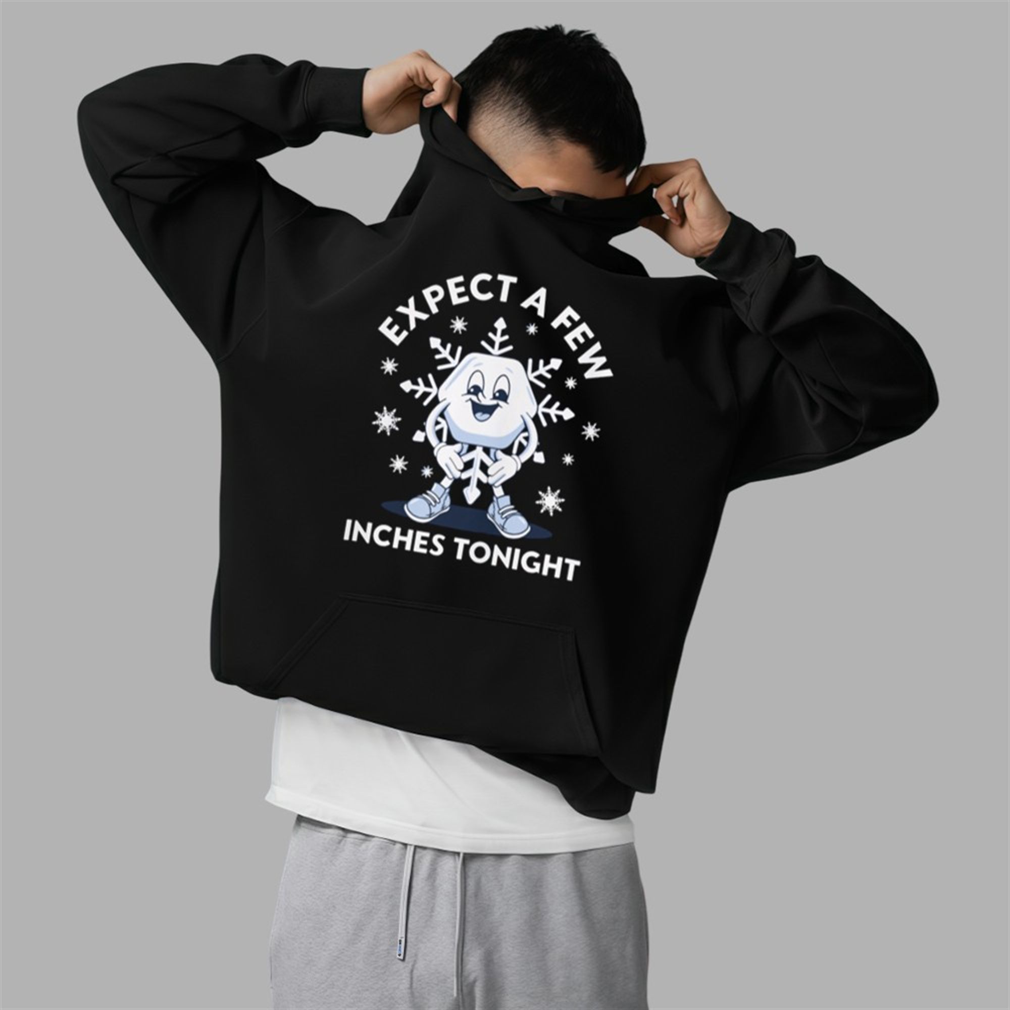 Struggling to find a gift for the jokester in your life? Look no further. This Expect a Few Inches Tonight Shirt combines winter weather themes with a splash of naughty humor. Featuring a confident, sneaker-wearing snowflake character and bold typography, it strikes the perfect balance between festive cheer and cheeky wit.
