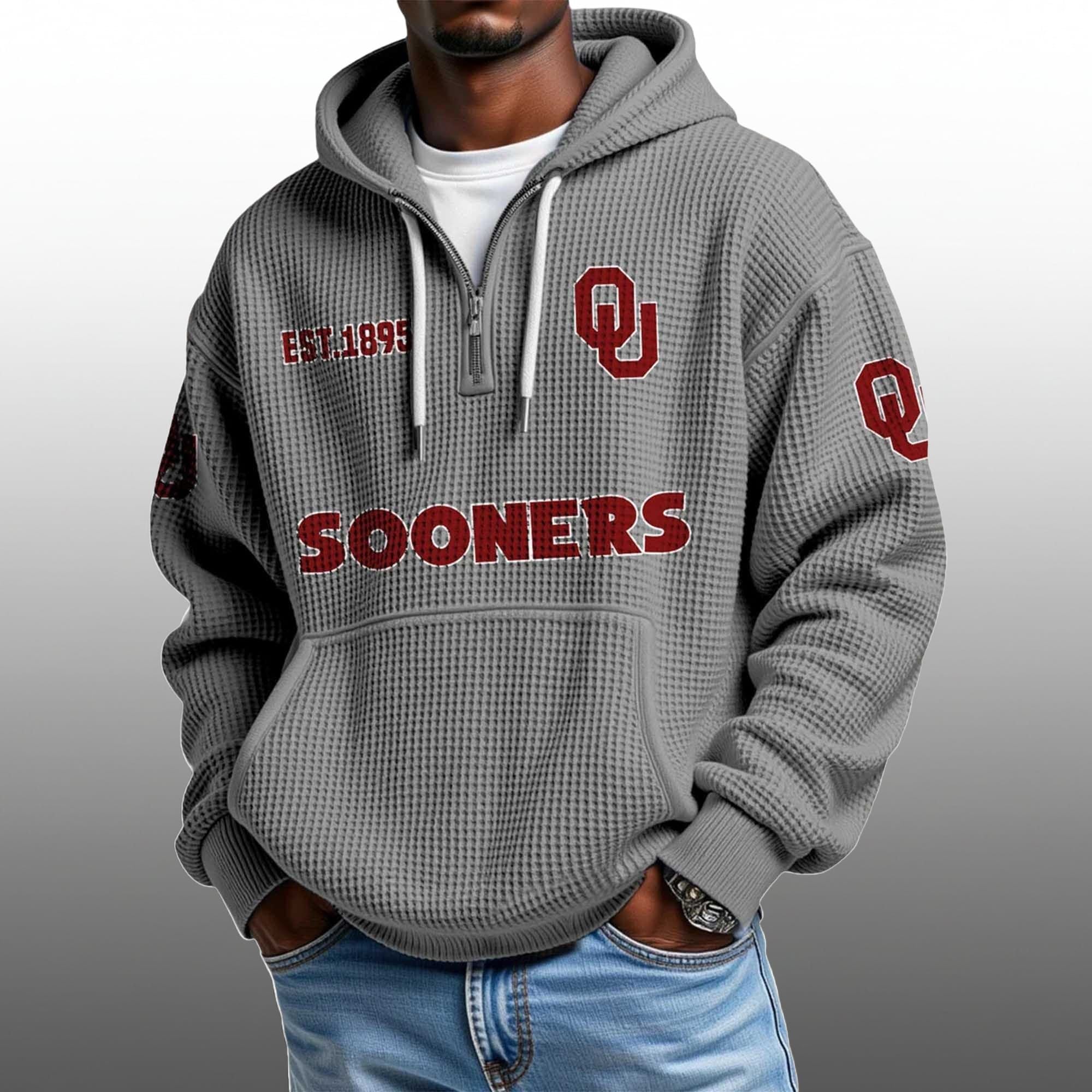 2026 Sooners EST 1895 Half Quarter Zip Waffle Hoodie – Tradition Meets Texture