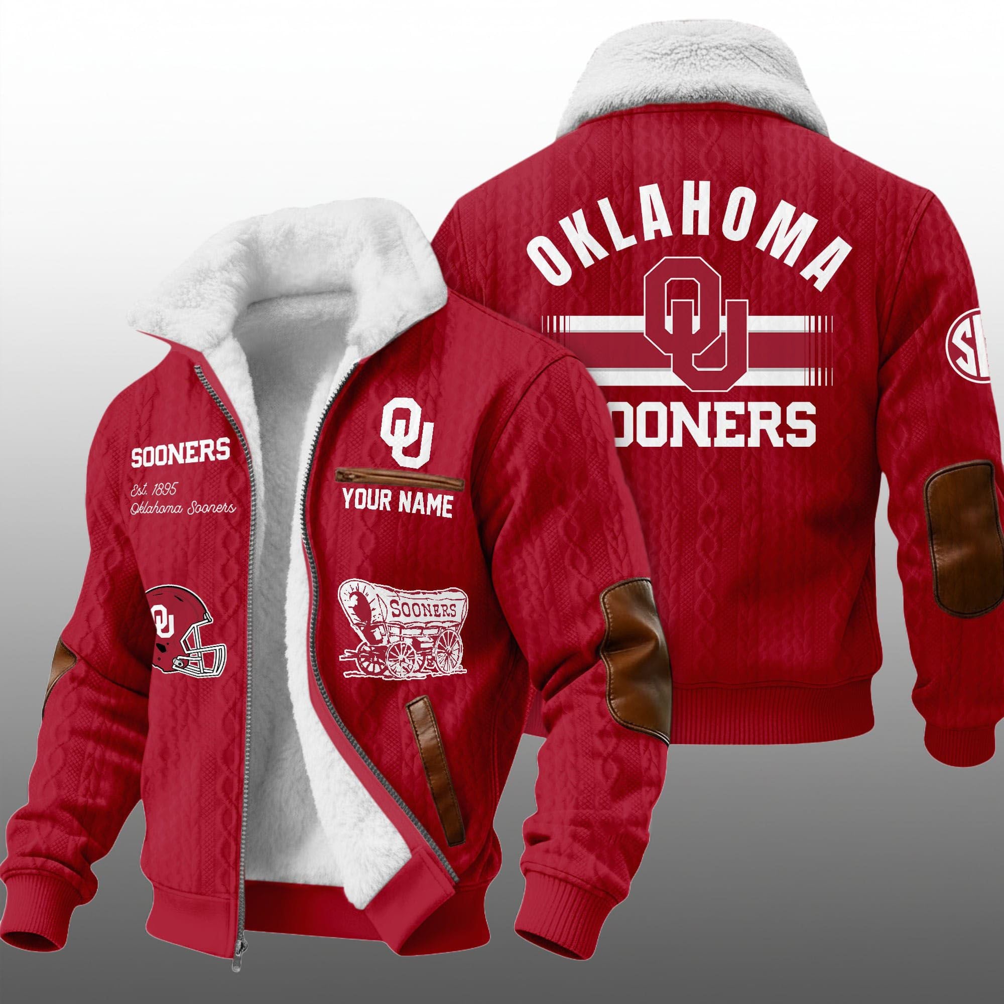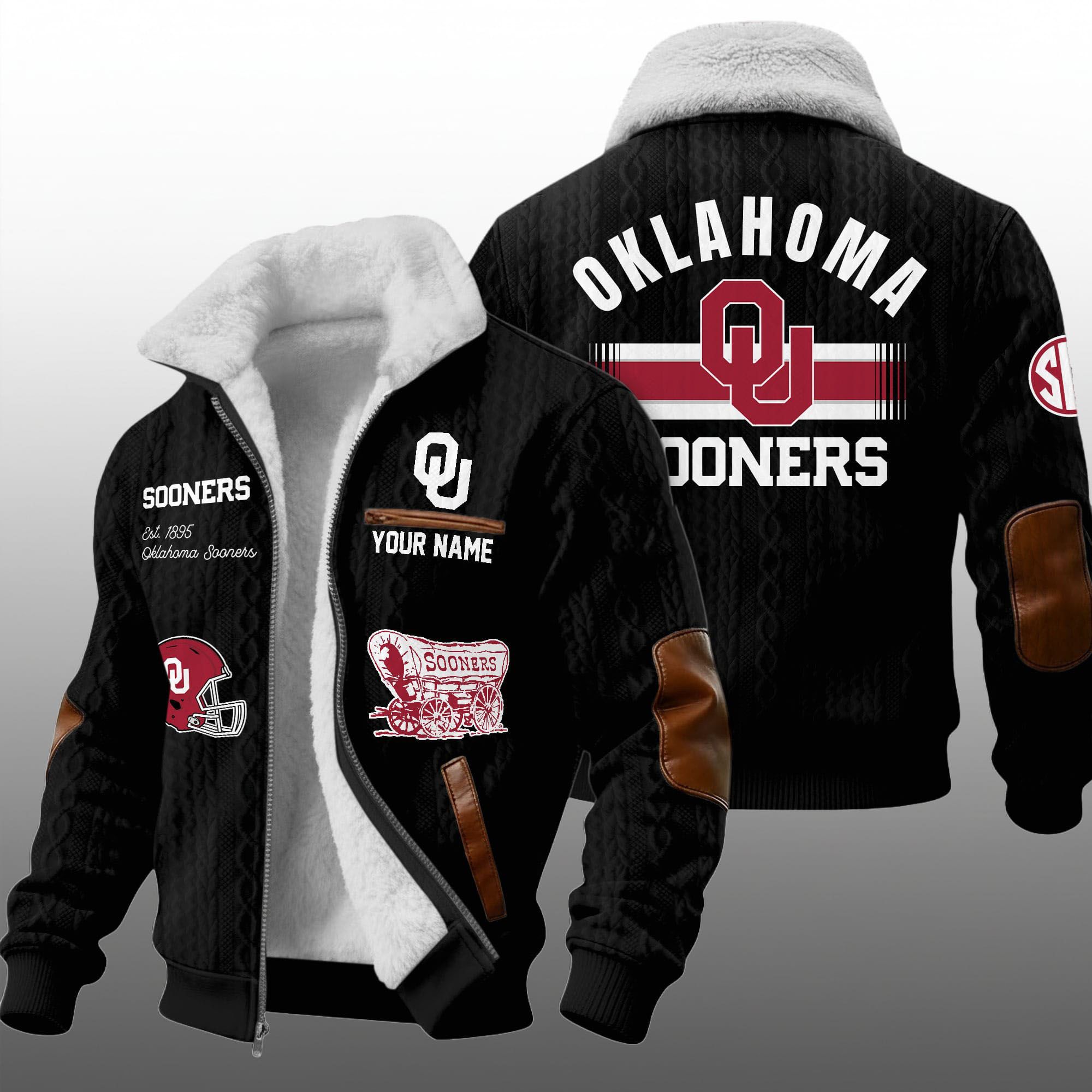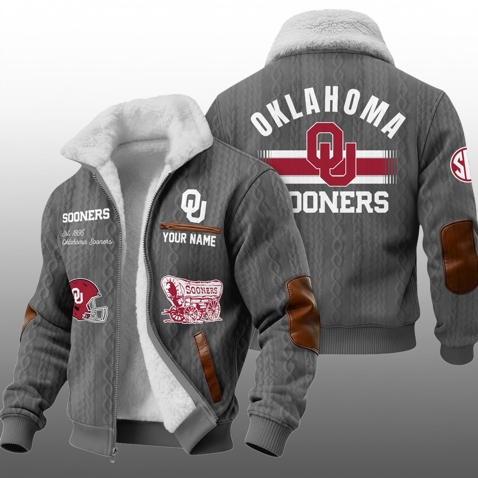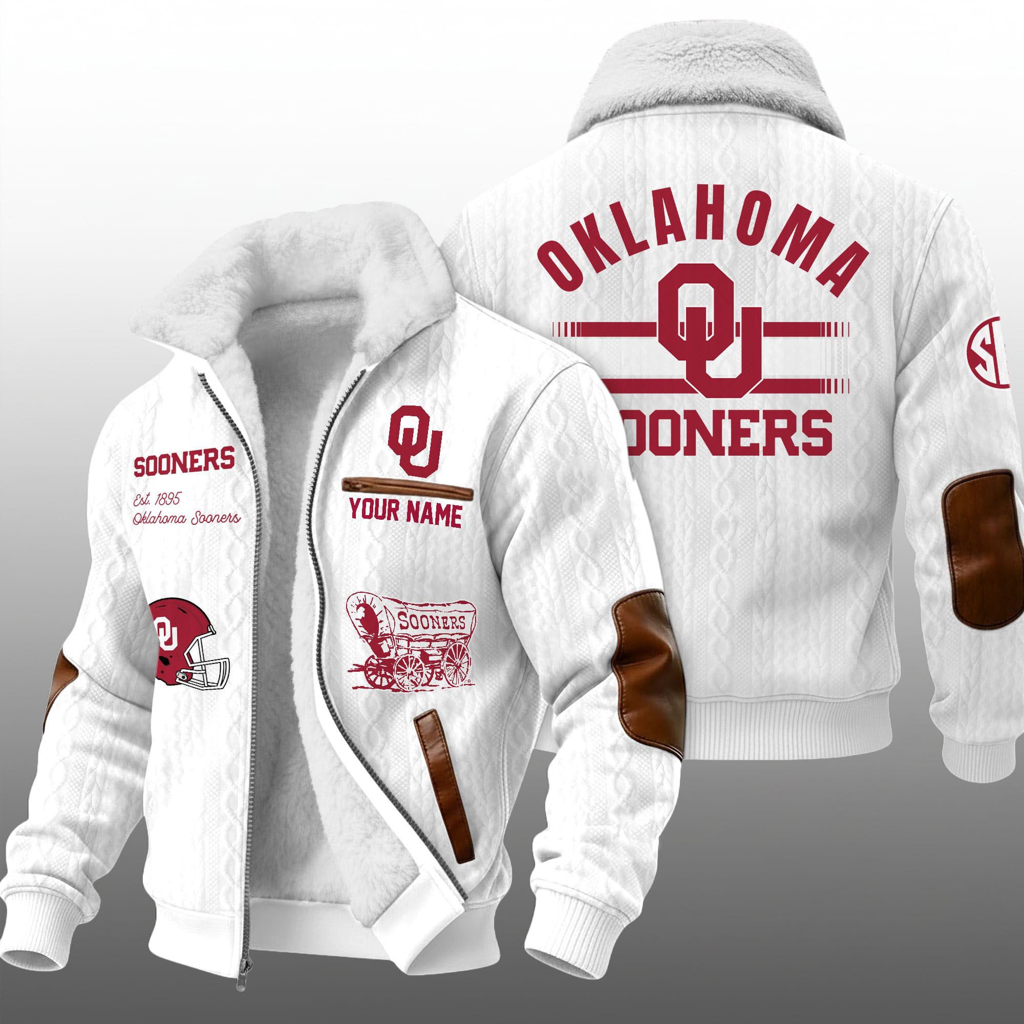 Elevate your game day attire with the ultimate symbol of collegiate loyalty: the Oklahoma Sooners Est. 1895 Winter Fleece Jacket. Designed for the dedicated fan who braves the cold at the Palace on the Prairie, this jacket combines the vintage aesthetic of a classic cable knit sweater with the rugged durability of a modern winter coat.