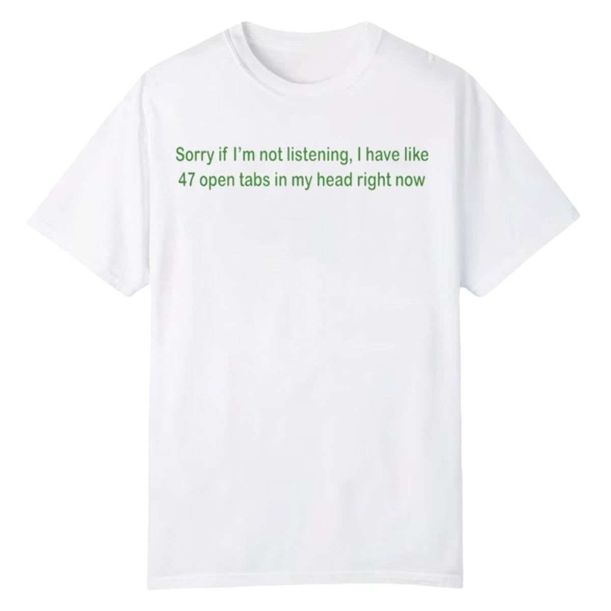 Sorry If I am Not Listening I Have Like 47 Open Tabs In My Head Right Now Shirt – The Funny Overthinker Tee