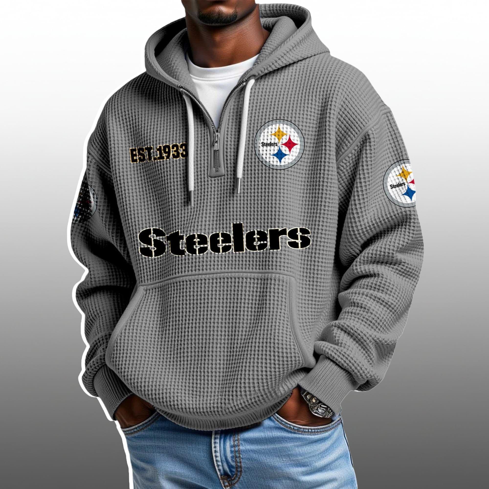 2026 Steelers EST 1993 Half Quarter Zip Waffle Hoodie – Celebrate Over 90 Years