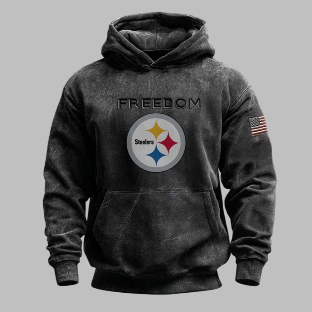 Don’t settle for generic fan gear. Elevate your collection with the 2025 Pittsburgh Steelers Freedom Flag Hoodie—a powerful symbol of your dedication, resilience, and pride. Whether you’re cheering from the stands, watching from home, or representing your team out on the town, this hoodie delivers unbeatable comfort, standout style, and a message that resonates. Stand tall, stand proud, and show the world what you stand for. Order yours today and become a part of a proud tradition.