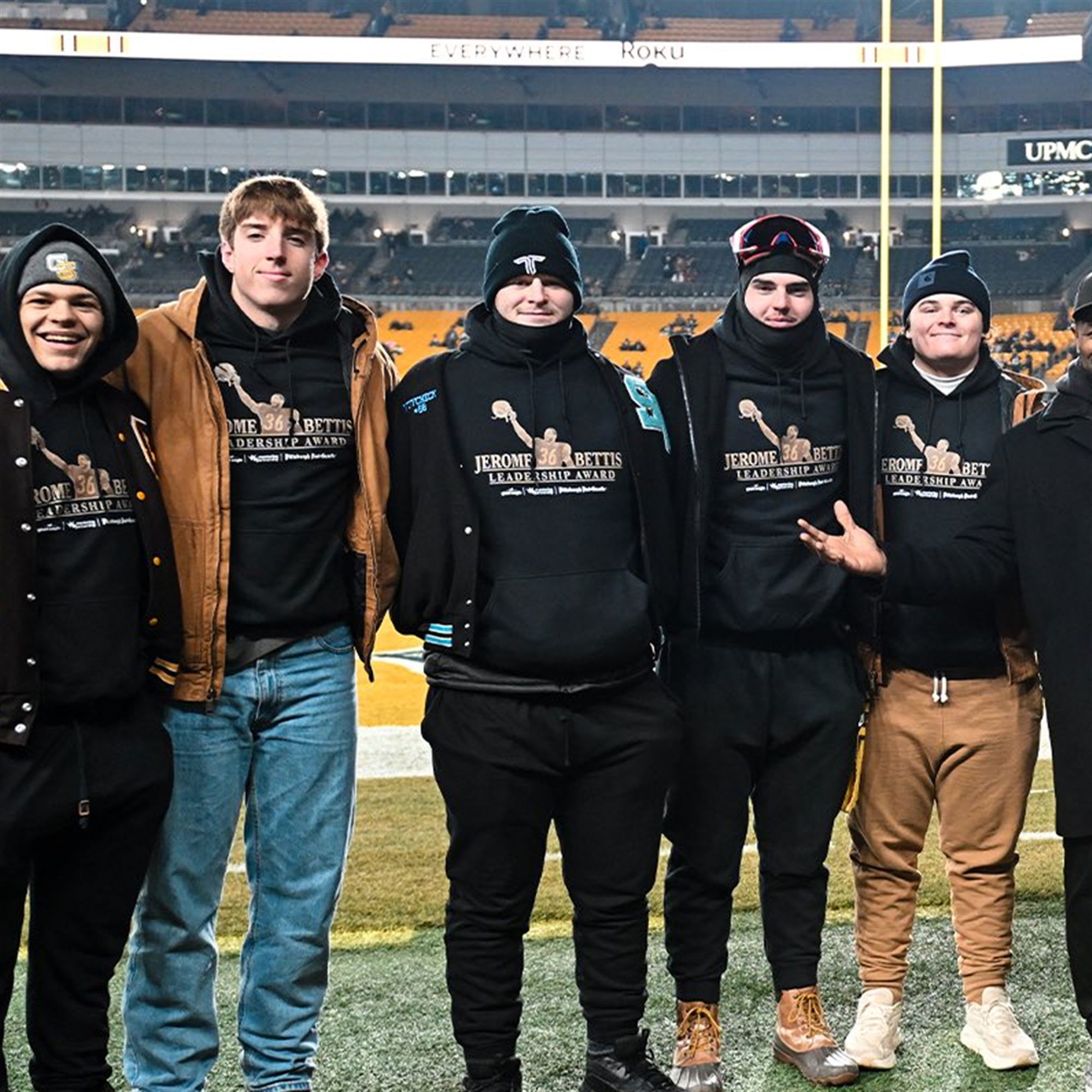 This specific hoodie design exploded across social media in January 2026 following a viral clip from the recent Jerome Bettis Leadership Award ceremony. During the event, Bettis gave an impassioned speech about the “Bus Ride Home” anniversary, and local high school winners were seen wearing this exact commemorative gear. The image of the “Next Generation” standing next to the Hall of Famer in matching hoodies struck a chord with the fanbase, turning this event merch into a must-have item for fans nationwide who wanted to support the message of mentorship.
